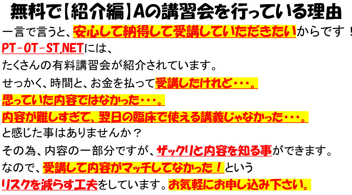 みたいな、新人~中堅向けの療法士に向いている勉強会と思って下さい。