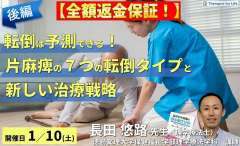 転倒は予測できる!片麻痺の7つの転倒タイプと新しいリハビリテーション戦略(後編)~膝折れ型・横流れ型・屈曲型・逆戻り型・失調型~ 講師: 長田悠路先生 転倒は予測できる!片麻痺の7つの転倒タイプと新しいリハビリ…