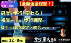 ※ナイトセミナー【感覚が変われば歩行が変わる!】視覚システムから紐解く歩行戦略〜徒手介入と環境設定、ビジョントレーニングの統合的アプローチ〜講師:今村泰丈先生 ※ナイトセミナー【感覚が変われば歩行が変わる!】視覚システ…