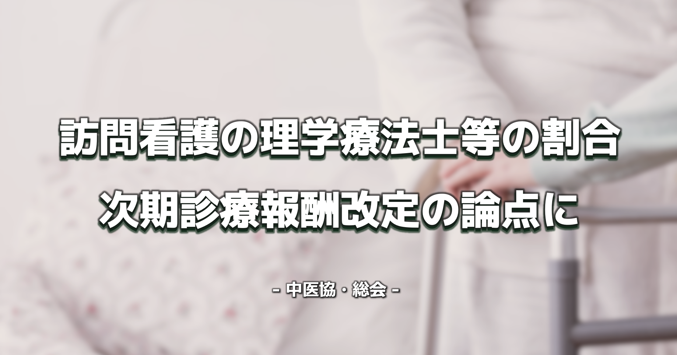しかしながら、訪問看護ステーションに所属する理学療法士の数が多いことが具体的にどのような問題があるのか、といった資料は示されることなく議論が行われている。中医協では、理学療法士の割合に注視するのではなく、理学療法士等が関わる効果などを着目して議論を進めるべきではないかという意見も挙がった。