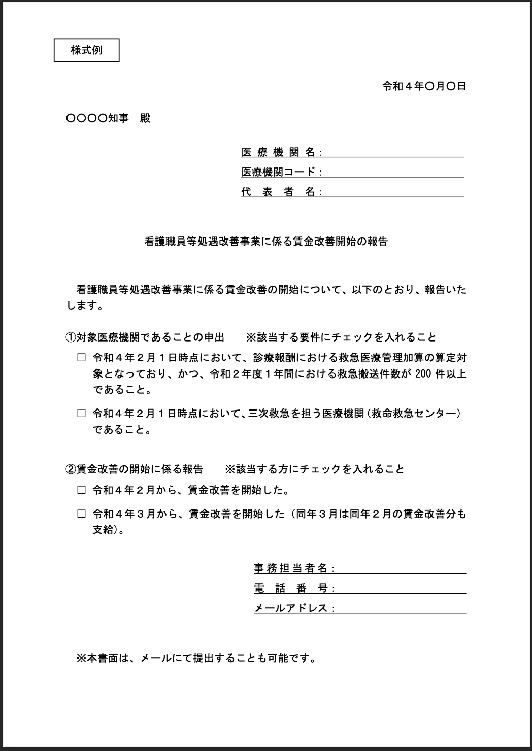 賃金改善開始の報告様式例:看護処遇改善 [Wordファイル/19KB]