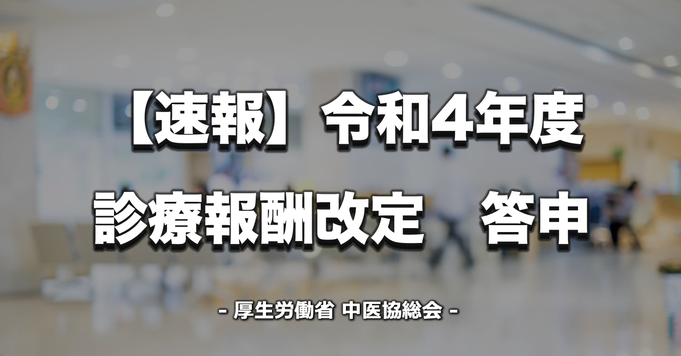 2月9日、中医協の総会にて令和4度診療報酬改定案が答申され、診療報酬改定の点数など具体的な内容が明らかとなりました。