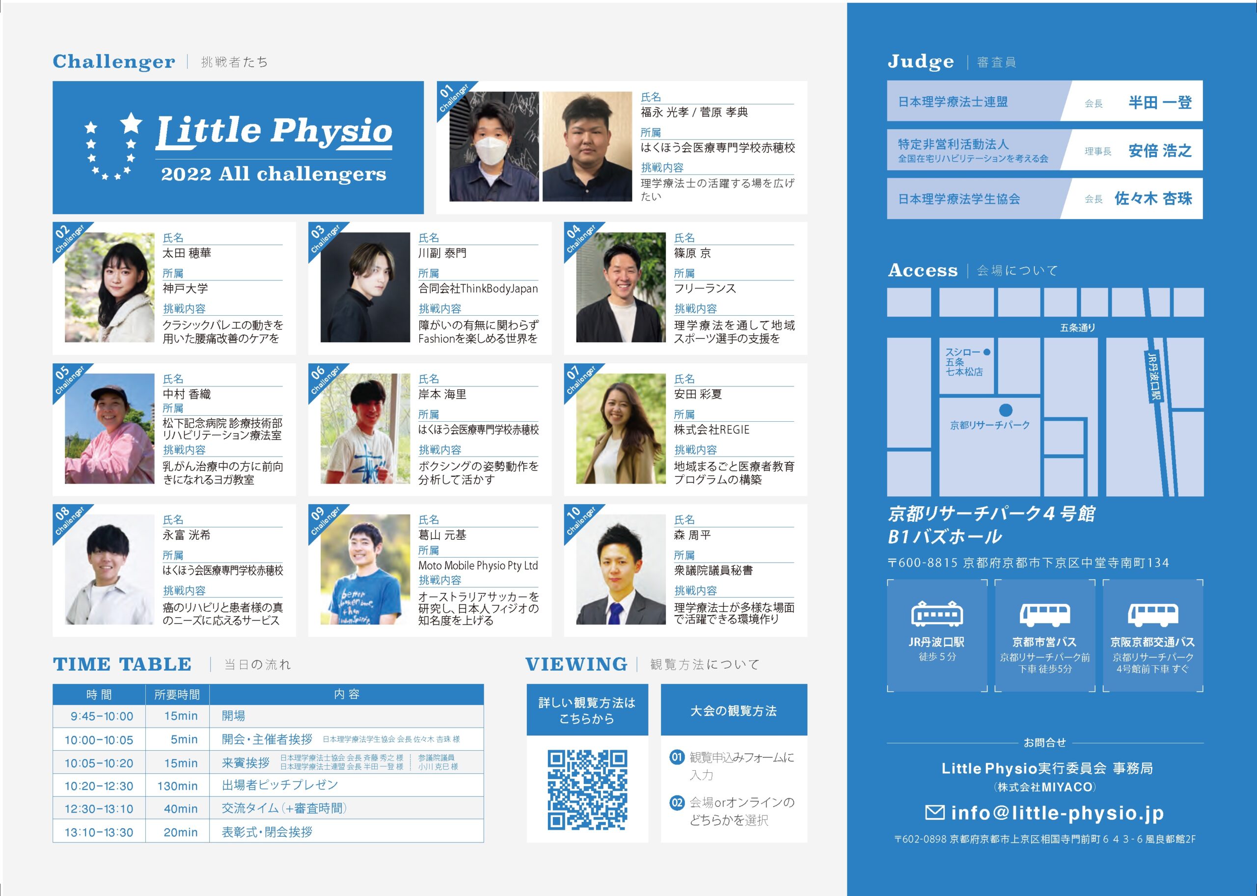 理学療法士を目指す学生や若手・中堅理学療法士を対象に夢を考え挑戦するイベント「Little Physio」が、いよいよ2022年6月11日(土)に京都にて開催。現在、