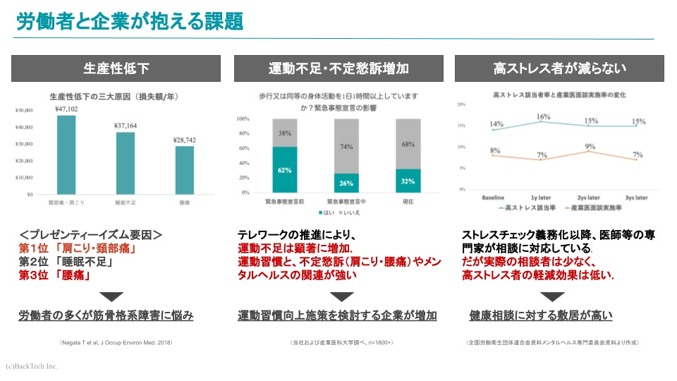 日本の労働者の多くはカラダの不調を適切にケア出来ずにいます。