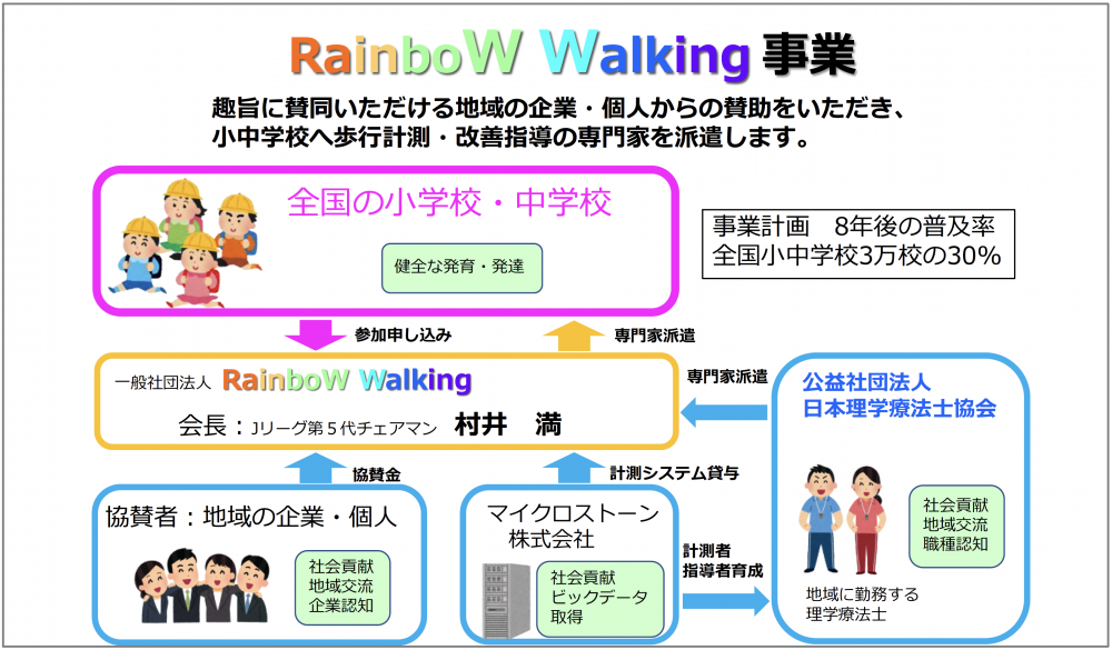 同事業が小学校・小中学校の生徒に正しい歩行を伝える機会となることで、児童の健全な発育や発達、また、姿勢が原因となる腰痛、膝痛、転倒など運動器関連疾患の予防や健康寿命の延伸に繋がることが期待される。