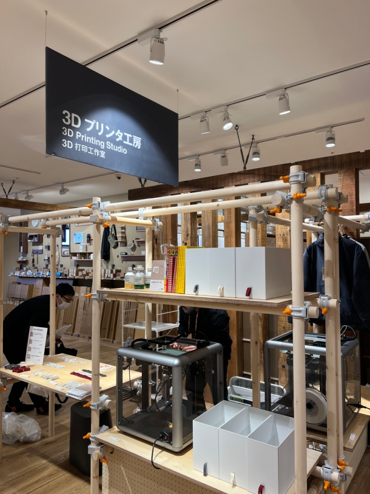 「3Dプリンタ工房」は、関東最大級店舗「無印良品 板橋南町22」店の4階の1コーナーに開設中。