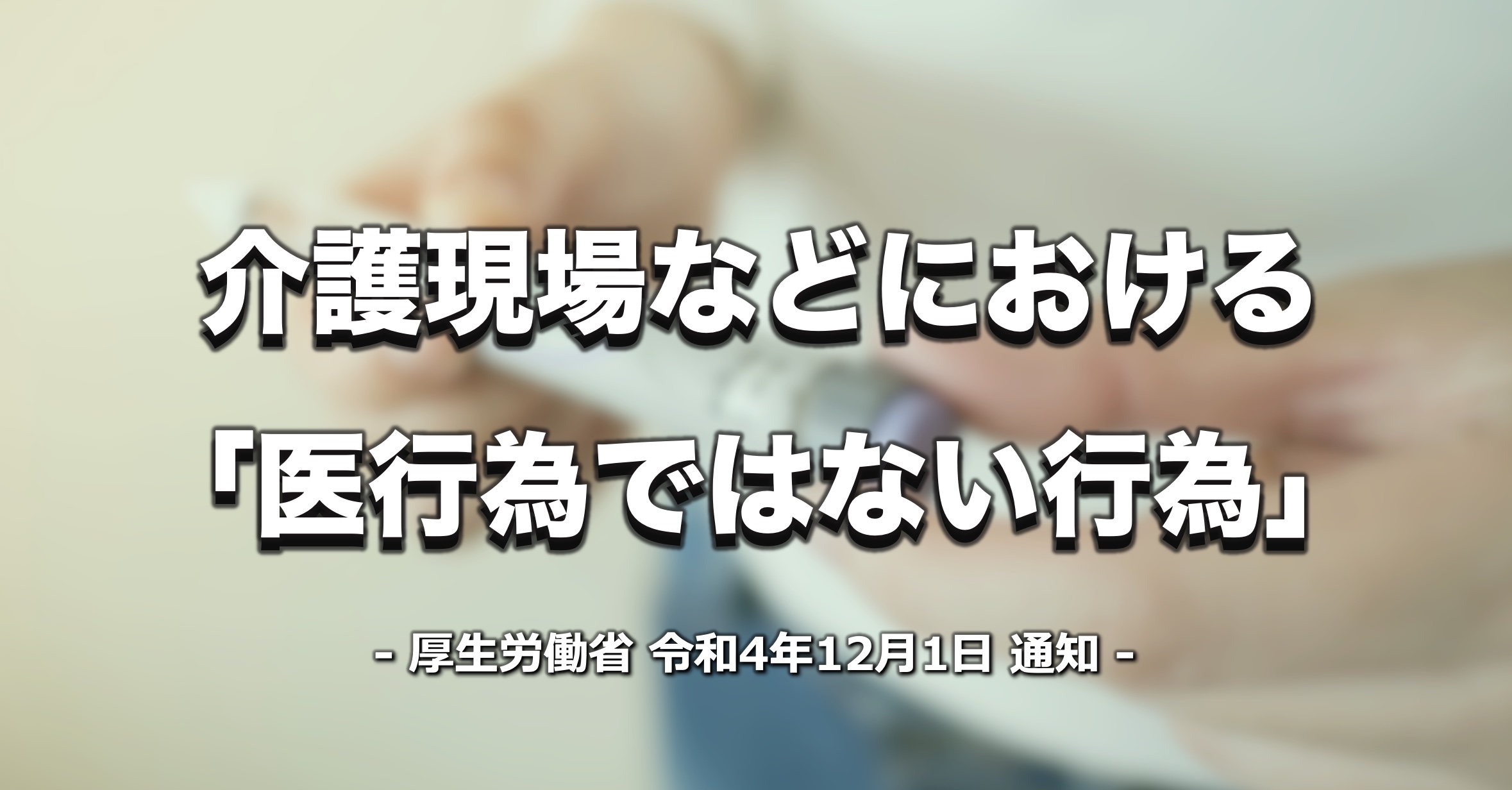 通知に際して厚生労働省は、「医行為に該当しない行為についても、高齢者介護の現場等において安全に行われるべきものであり、また、行為の実施に当たっては、患者の状態を踏まえ、医師、歯科医師又は看護職員と連携することや、必要に応じてマニュアルの作成や医療従事者による研修を行うことが適当である」と申し添えている。