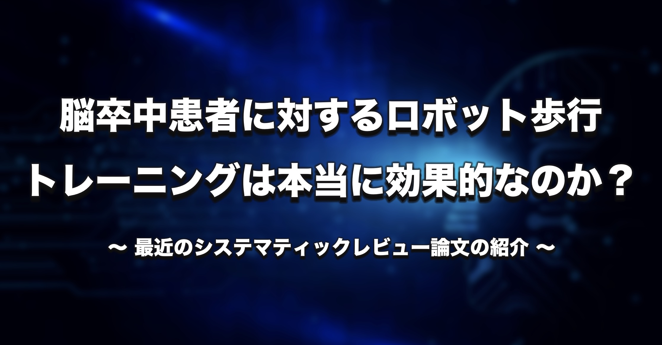 臨床でも身近になってきたロボット歩行リハビリテーションですが、まだ活用するイメージが湧きにくいという声もよく聞きます。本稿では、3本のシステマティックレビューからその効果をまとめたいと思います。(著者:リハビリテーション医療DX研究会 幹事 桑原渉)
