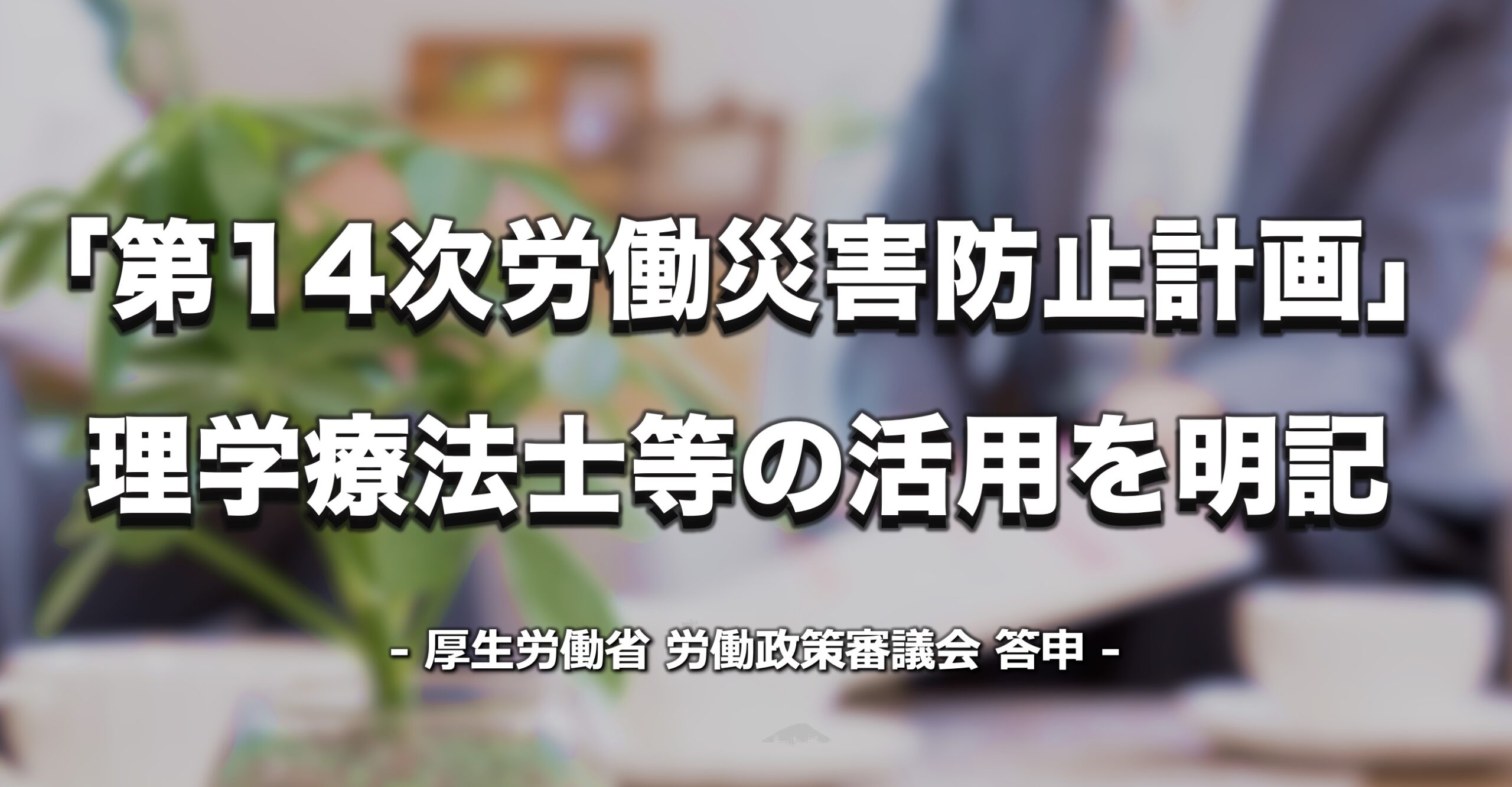 13日、労働政策審議会が加藤勝信厚生労働大臣に対し「第14次労働災害防止計画」について答申を行い、「理学療法士等を活用」することが明記された。