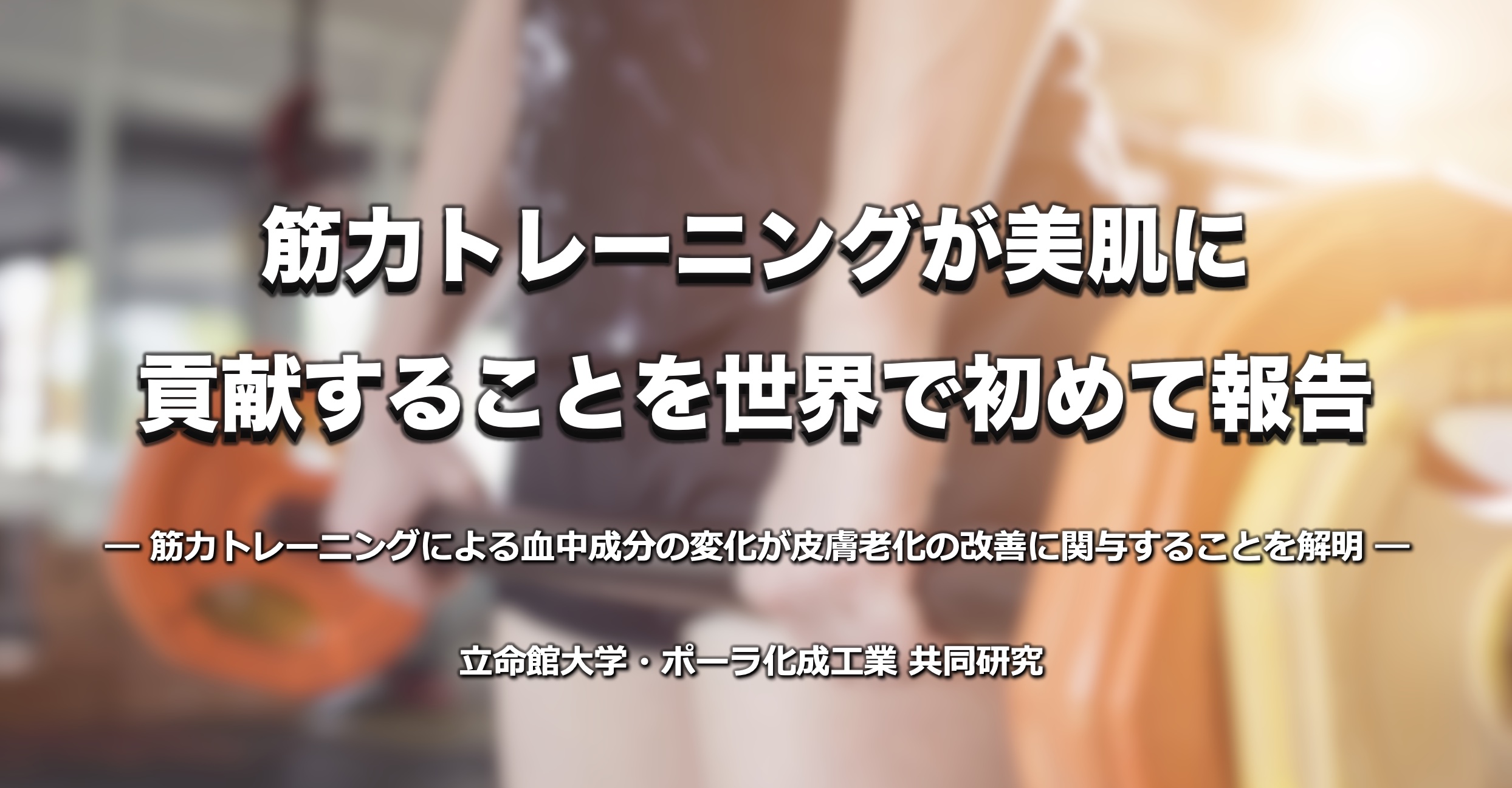 筋力トレーニングが美肌に貢献することを世界で初めて報告 ~筋力トレーニングによる血中成分の変化が皮膚老化の改善に関与することを解明~(立命館大学HP)