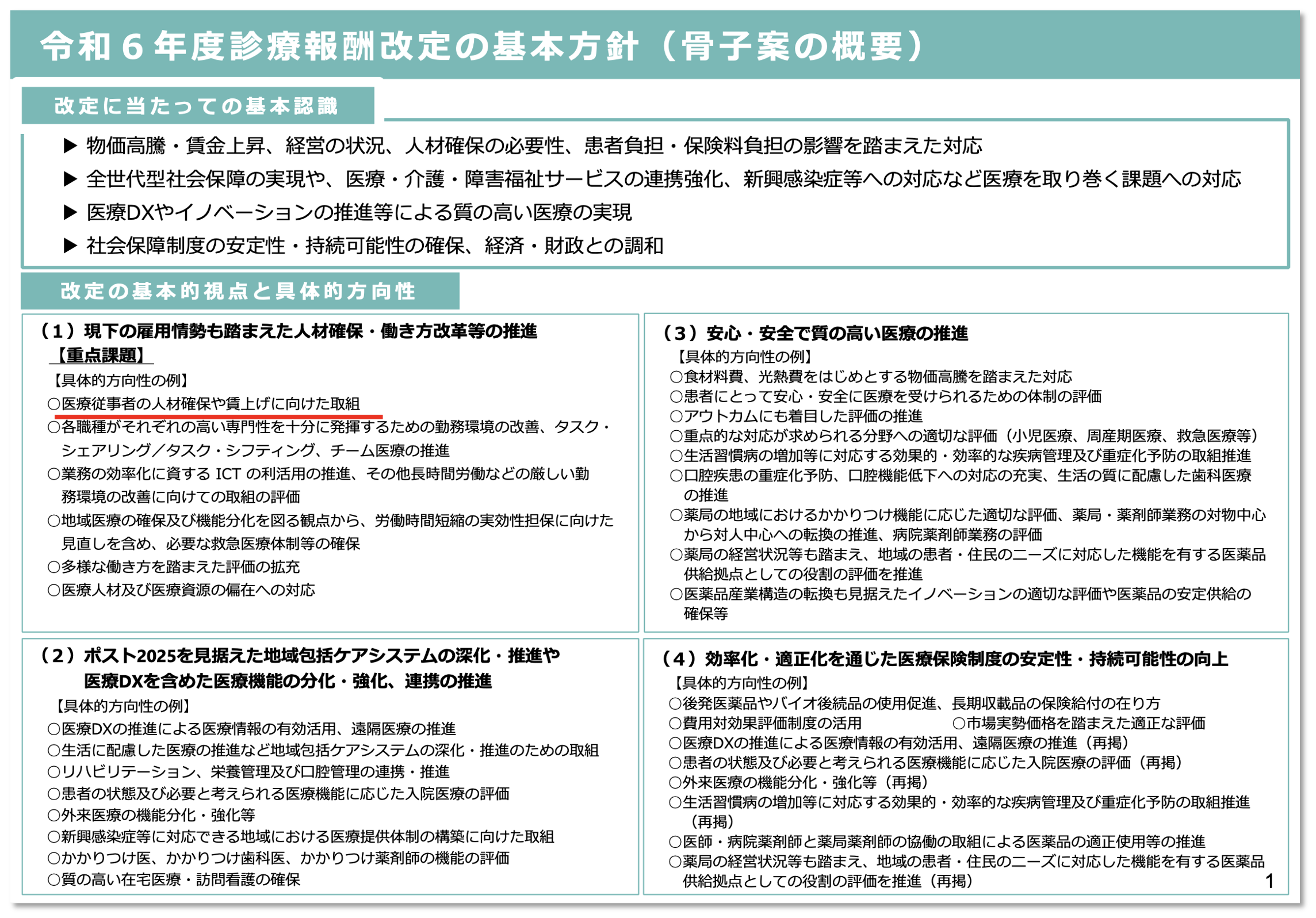 【資料1-2】令和6年度診療報酬改定の基本方針(骨子案)