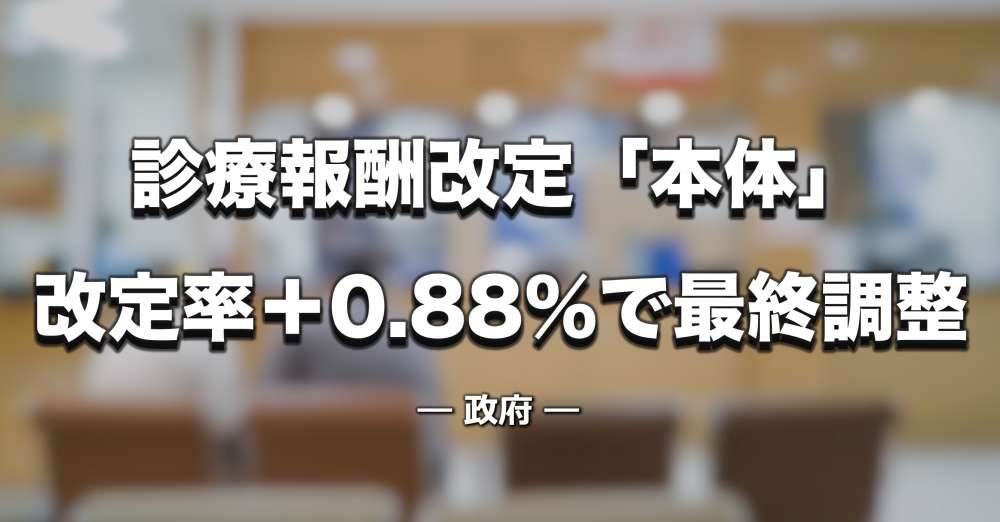 参考:診療報酬改定 人件費など「本体」0.88%引き上げで調整 政府(NHK)