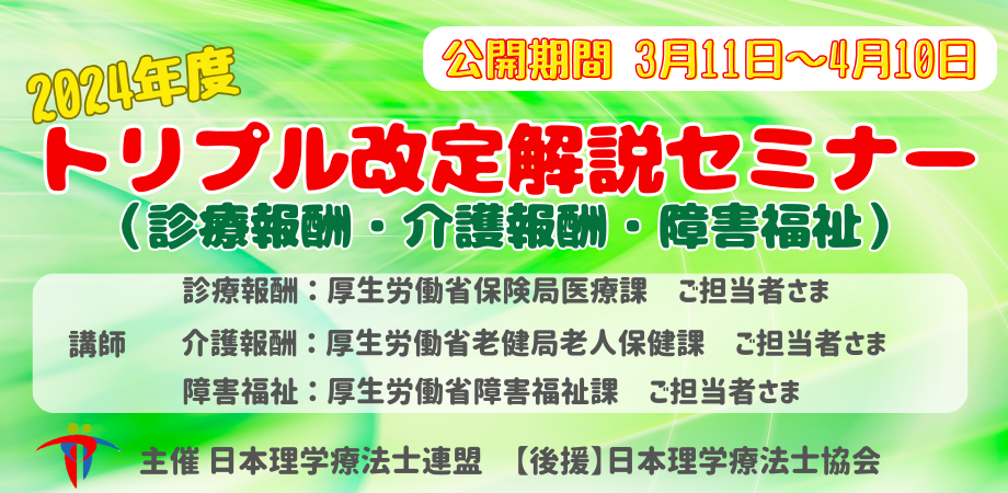日本理学療法士連盟が令和6年度トリプル改定(診療報酬・介護報酬・障害福祉サービス等報酬)研修会を開催する。