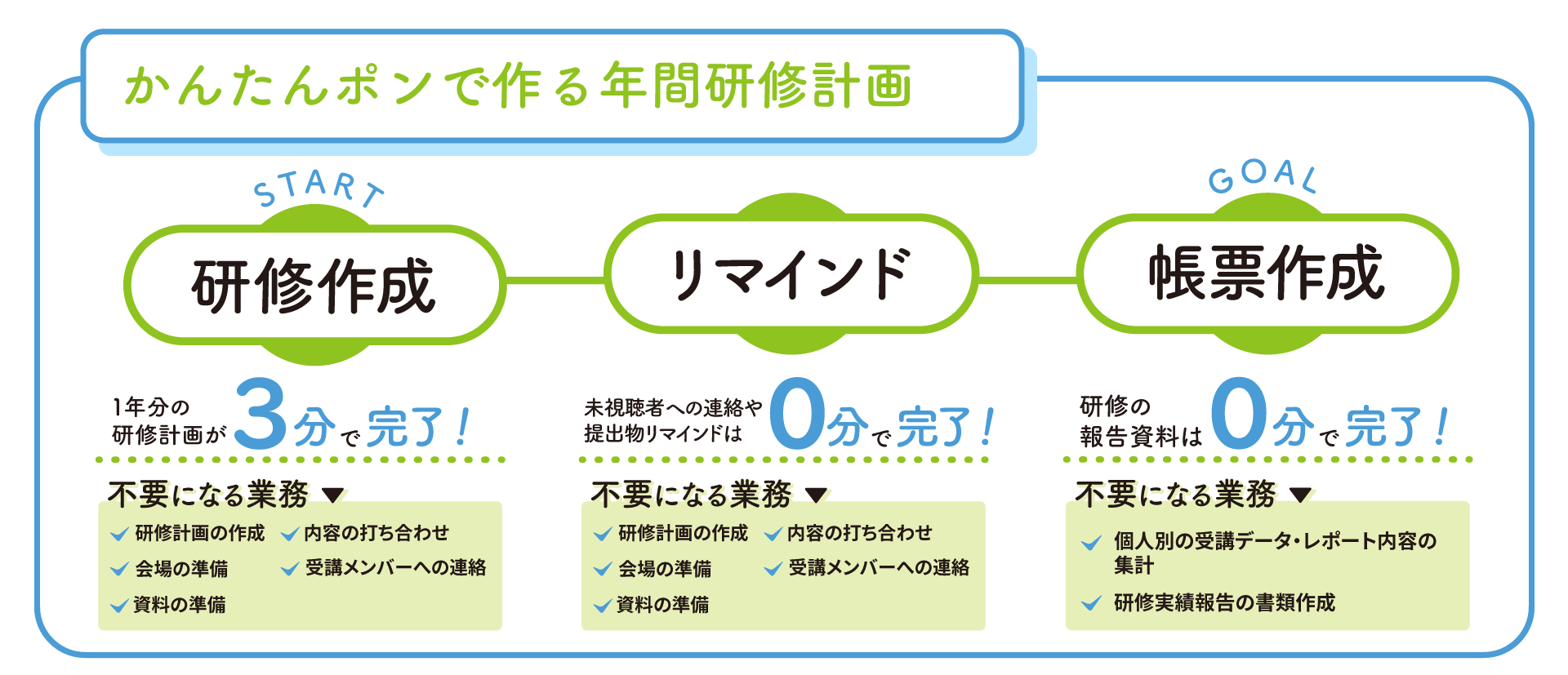 ■ 1年間の研修計画が最短3分で完了する「かんたんポン」