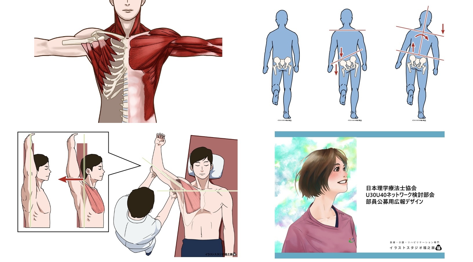 今回は、皆さまより情報提供をいただいた「理学療法士・作業療法士・言語聴覚士として臨床経験を持つイラストレーター」の方、5名をご紹介します。