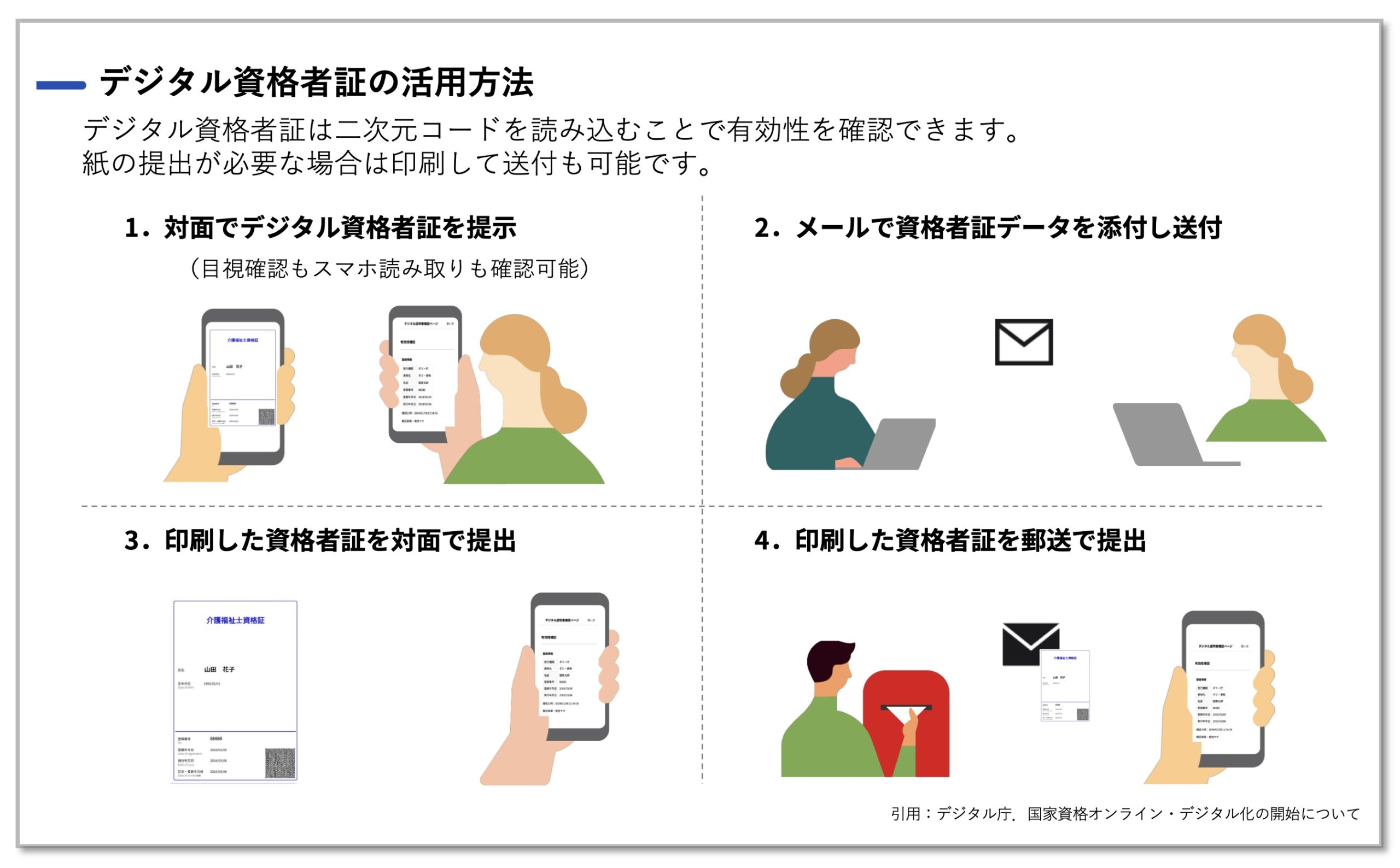 2025年春には、国家資格の免許証がスマートフォンに搭載される見込みとなっている。報道では、iPhone(iOS)への実装が予定されており、Androidなどへの搭載は未定となっている。