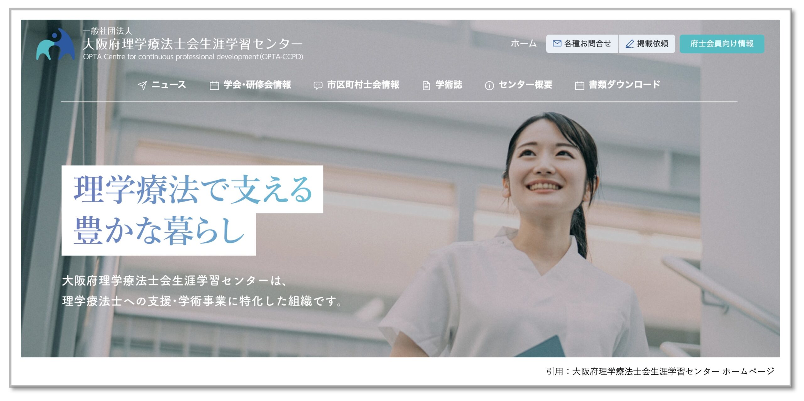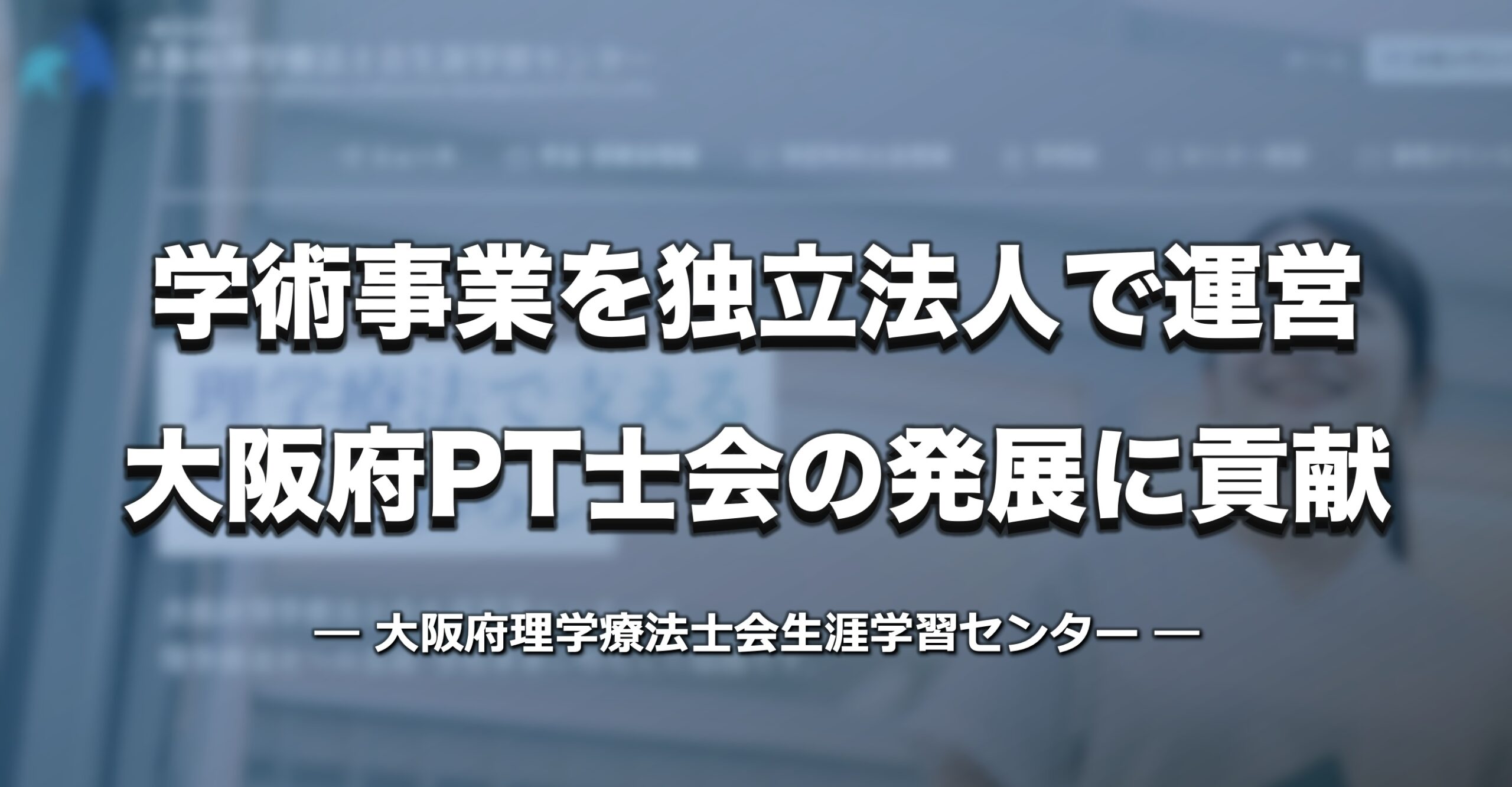 大阪府理学療法士会(以下、府士会)は、2018年より学術局を「大阪府理学療法士会生涯学習センター(以下、センター)」として分離独立し、理学療法士の生涯学習のサポート、人格、倫理、学術機能の研鑽を支援する学術事業に特化した活動を行っている。