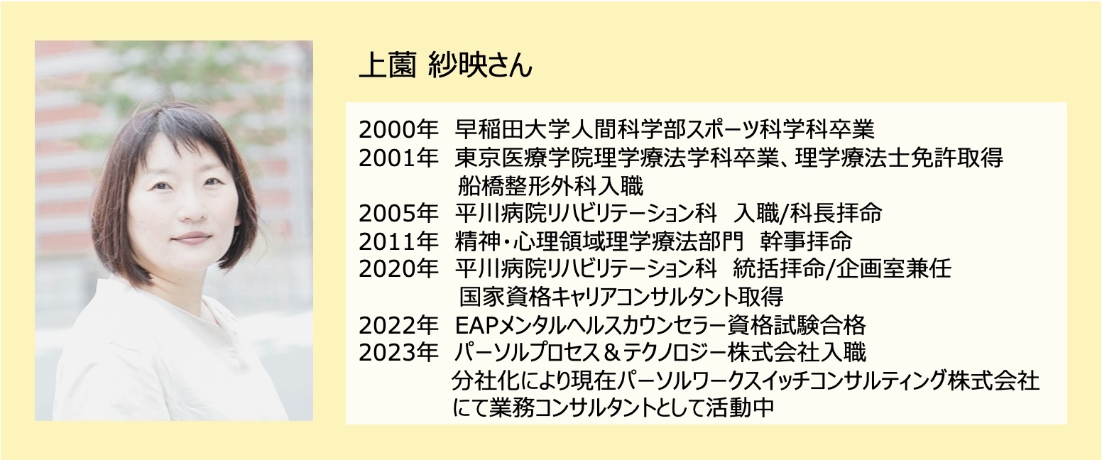 今回、精神科病院で理学療法士として長年活躍されている上薗紗映さんに、理学療法士のメンタルヘルスとその対策についてお話を伺いました。