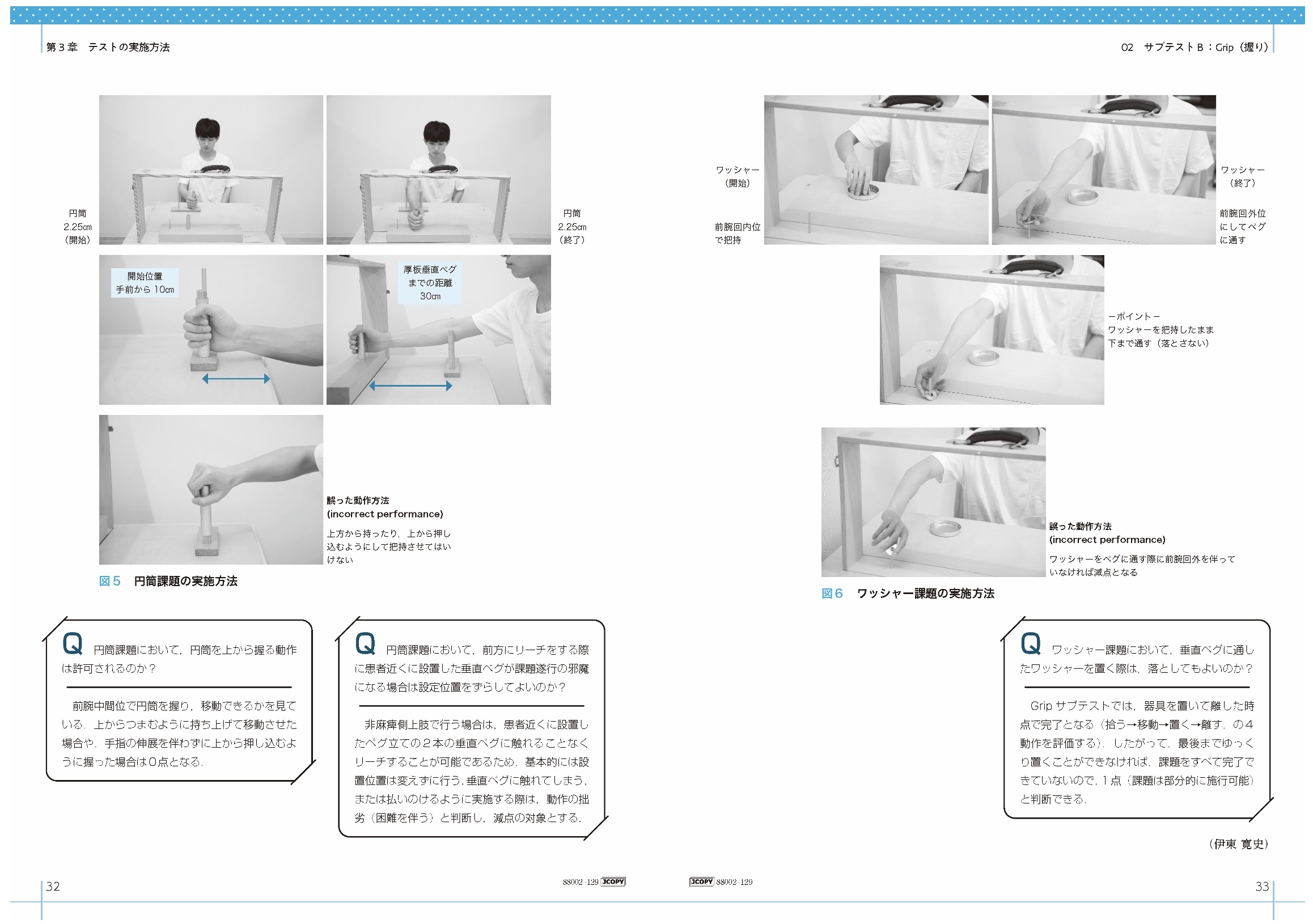 実際のテスト実施方法については、書籍のなかで細かな注意点が写真で掲載。想定されうる疑問点まで記載されており、評価時に迷うことなく実施することができるよう紹介されている。