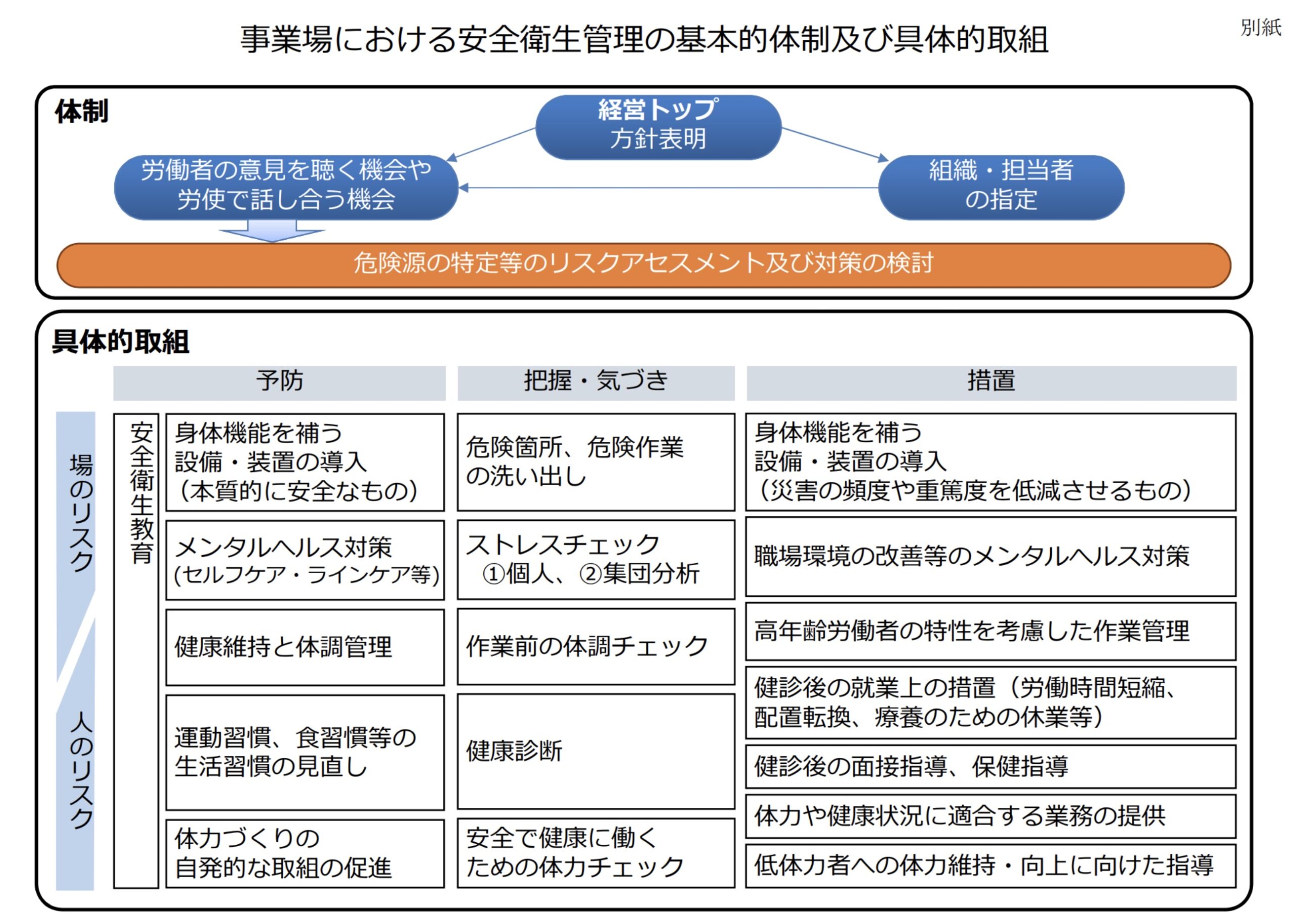 高年齢労働者が安心して安全に働ける職場環境づくりや労働災害の予防的観点からの高年齢労働者の健康づくりを推進するために、企業や労働者は対策が求められています。