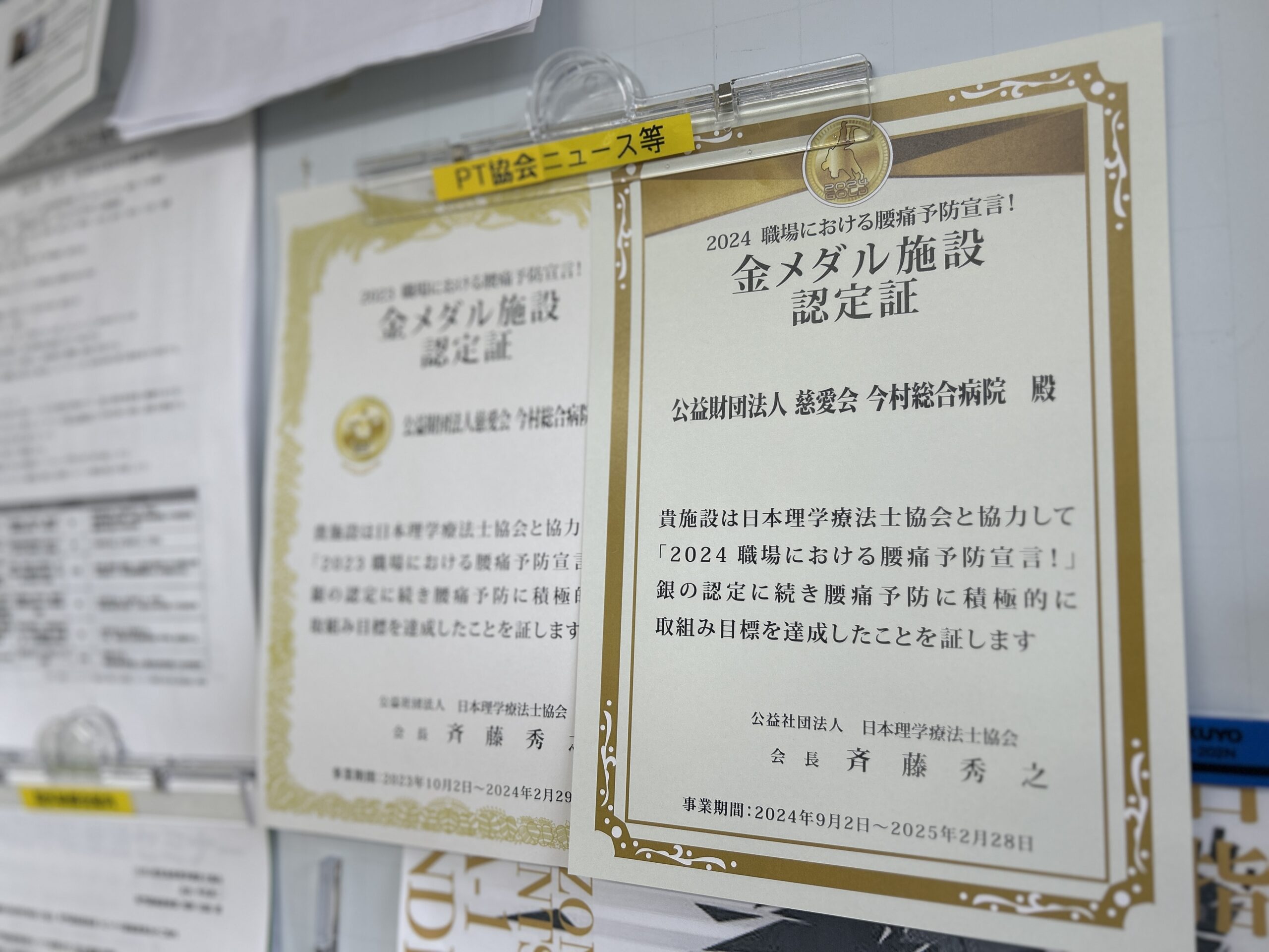 「職場における腰痛予防宣言!」は、取り組み内容に応じて3段階(金メダル・銀メダル・銅メダル)に評価され、それぞれ賞状が発行されます。また2023年からは、“Champion stage”を新設し、金メダル施設のうち他施設からの腰痛予防活動要請に応じる窓口を同協会ホームページに掲載し、所属施設外へ活動を拡大しています。