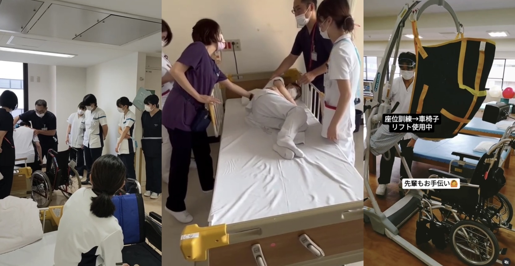 介護がより必要になる疾患は脳卒中が多いと感じ、これまで脳卒中外来・回復期・急性期・SCU(脳卒中専門の集中治療室)といった部署を経験してきました。その中で、同僚のセラピストや看護師を対象に移乗研修を実施し、2019年頃からは、腰痛予防の要素を取り入れてきました。