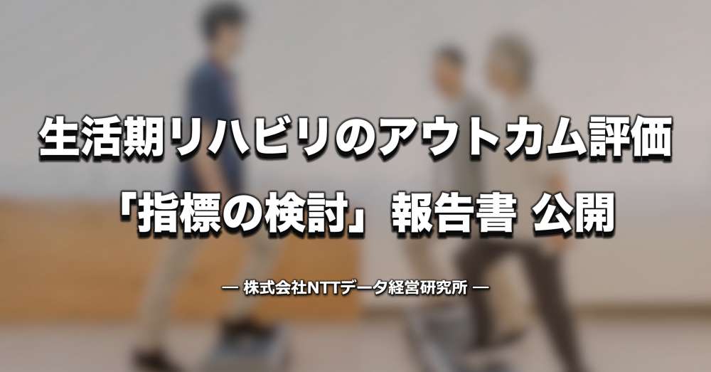 株式会社NTTデータ経営研究所は、厚生労働省の事業として取り組んだ調査研究「生活期リハビリテーションにおけるアウトカム指標の検討」の報告書を公開した。