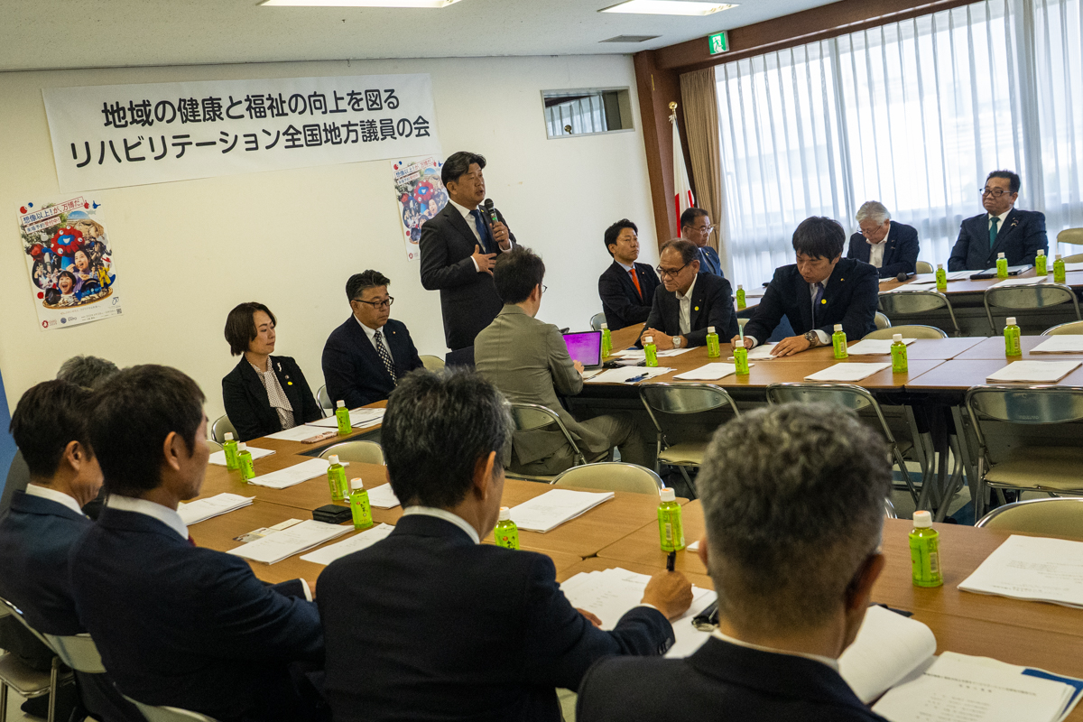 当日は浜松市(鈴木裕之市議・理学療法士)、豊中市(井本博一市議・理学療法士)、鎌倉市(後藤吾郎市議・理学療法士)、熊本県宇城市(四海公貴市議・理学療法士)、御船町(増田安至町議・理学療法士)、宮崎市(上野信吾市議・理学療法士)など、各地からリハビリテーション専門職の地方議員が出席した。