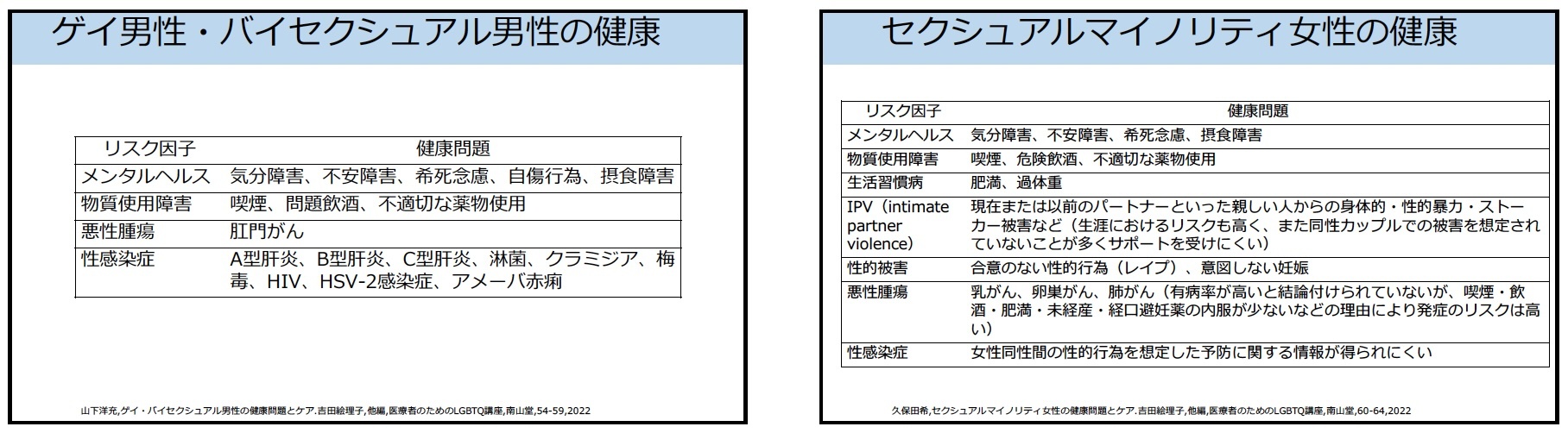 ー これまで心理的な負担のお話を伺ってきましたが、LGBTQ+の方に多い健康課題はあるのでしょうか。