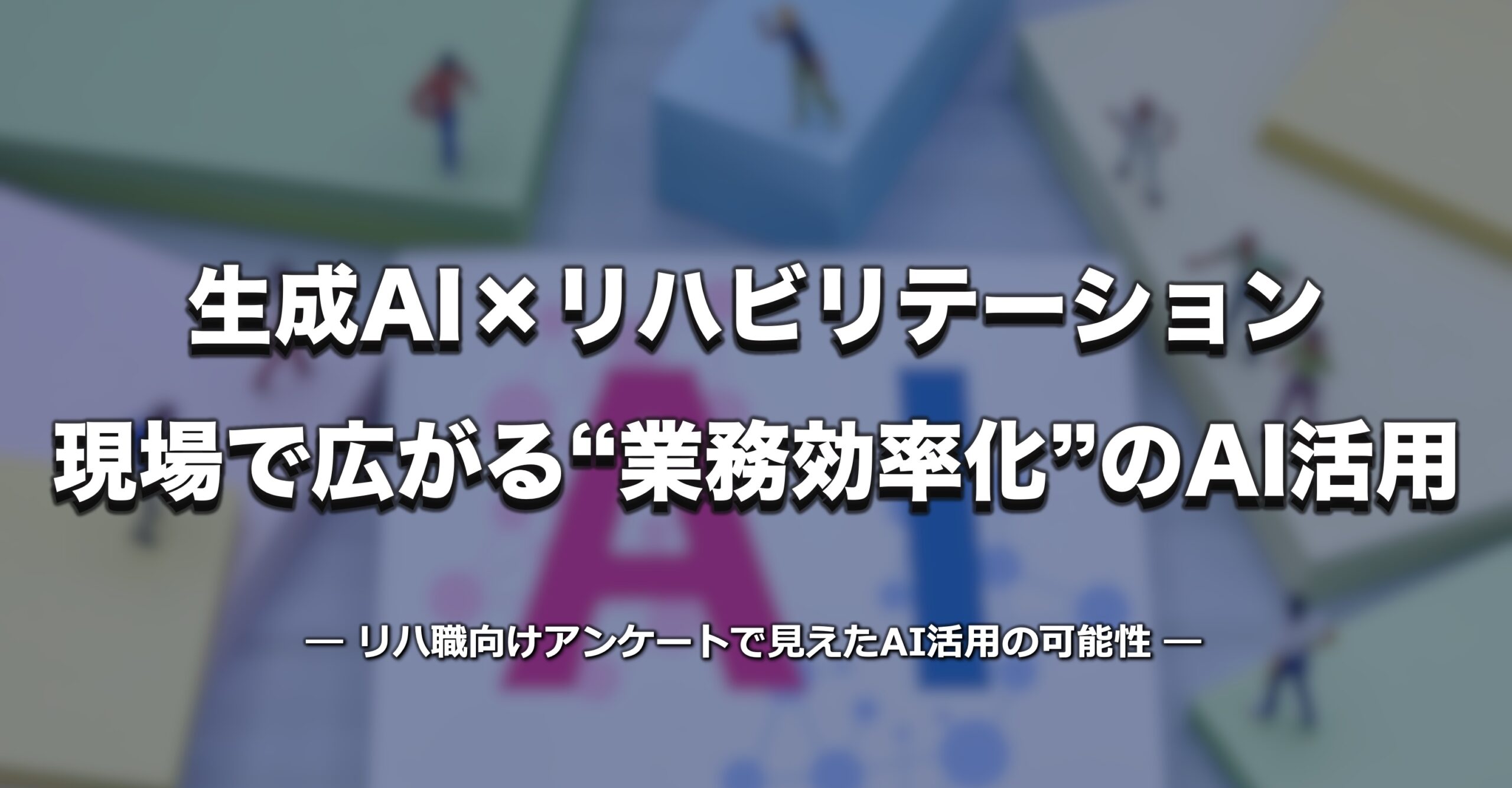 本記事では、こうした課題をふまえて、アンケートで回答の多かった利用パターンを中心に、リハビリテーション業務・事務業に関わる具体的なAI活用事例を紹介します。