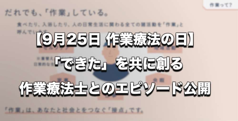 9月25日は日本作業療法士協会が設立された日であり、毎年各地から寄せられる作業療法士とのエピソード「あの日のできた」を公開しています。