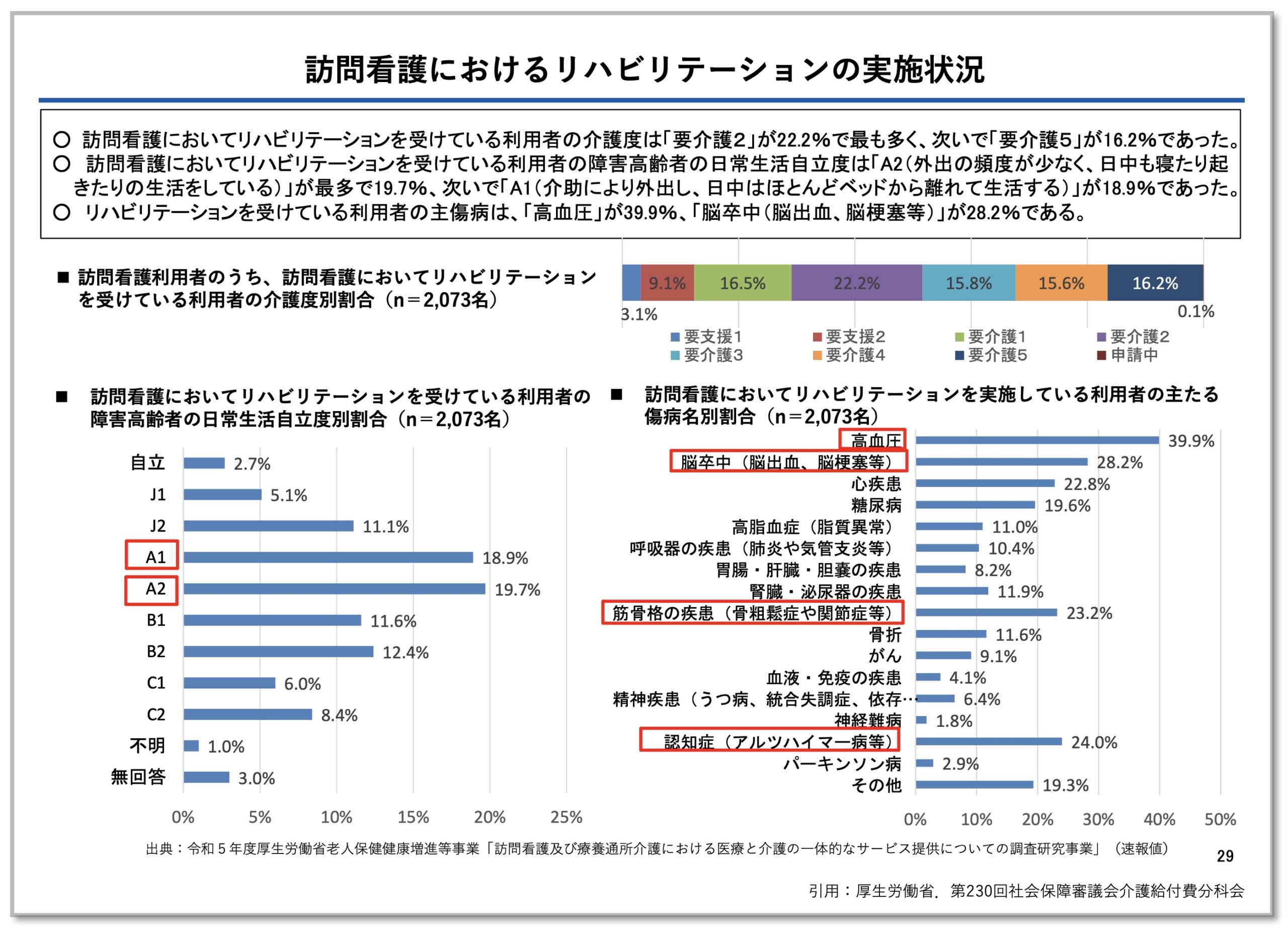 地域においてリハビリテーション需要に応える重要な役割を担っている実態を踏まえれば、今後の報酬改定の議論において、「リハビリテーション」としての位置づけをより明確に検討対象に含めていくことが望まれます。