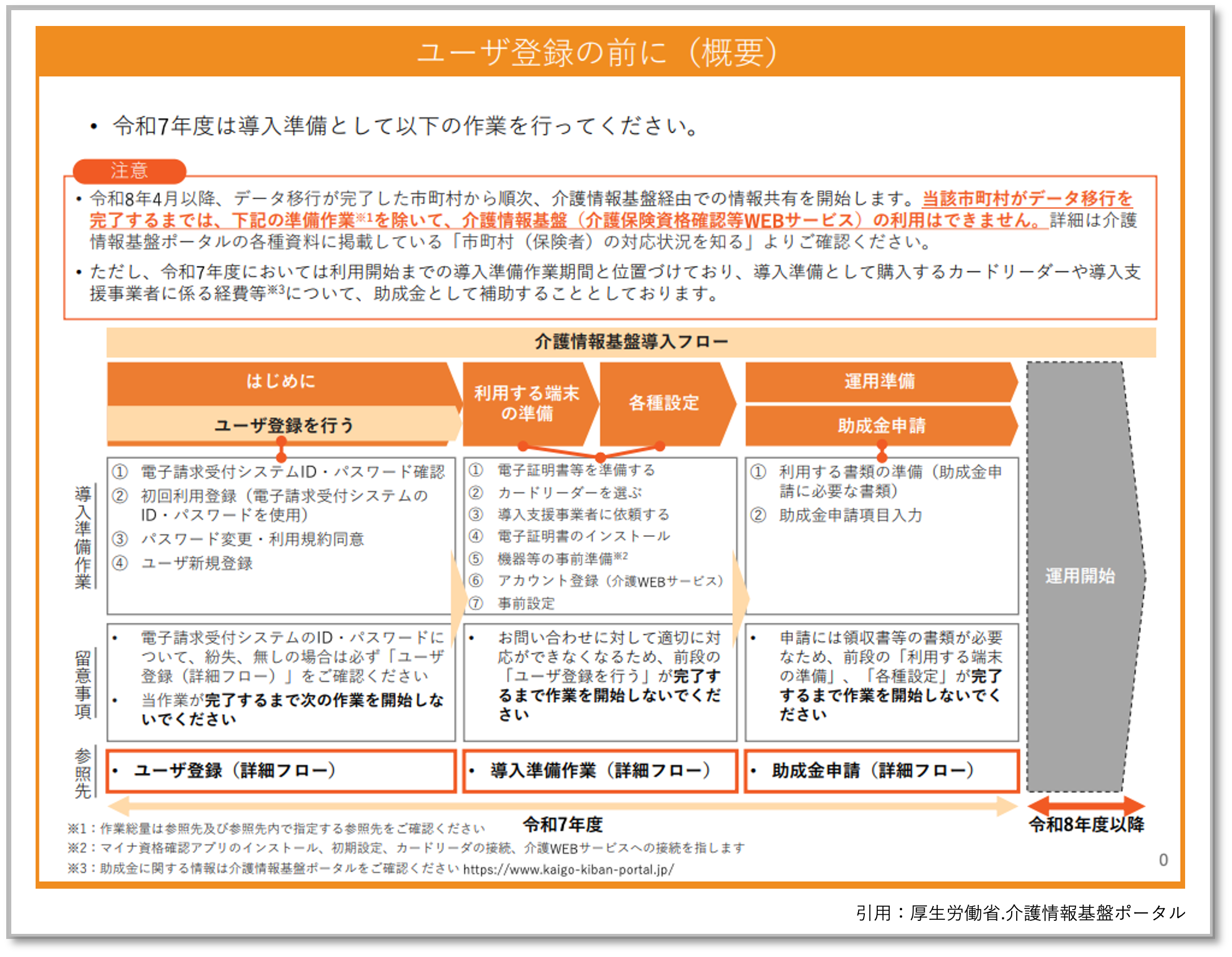 令和7年度は、導入準備作業期間と位置づけられており、導入準備として購入するカードリーダーや導入支援事業者に係る経費などについて、助成金として補助