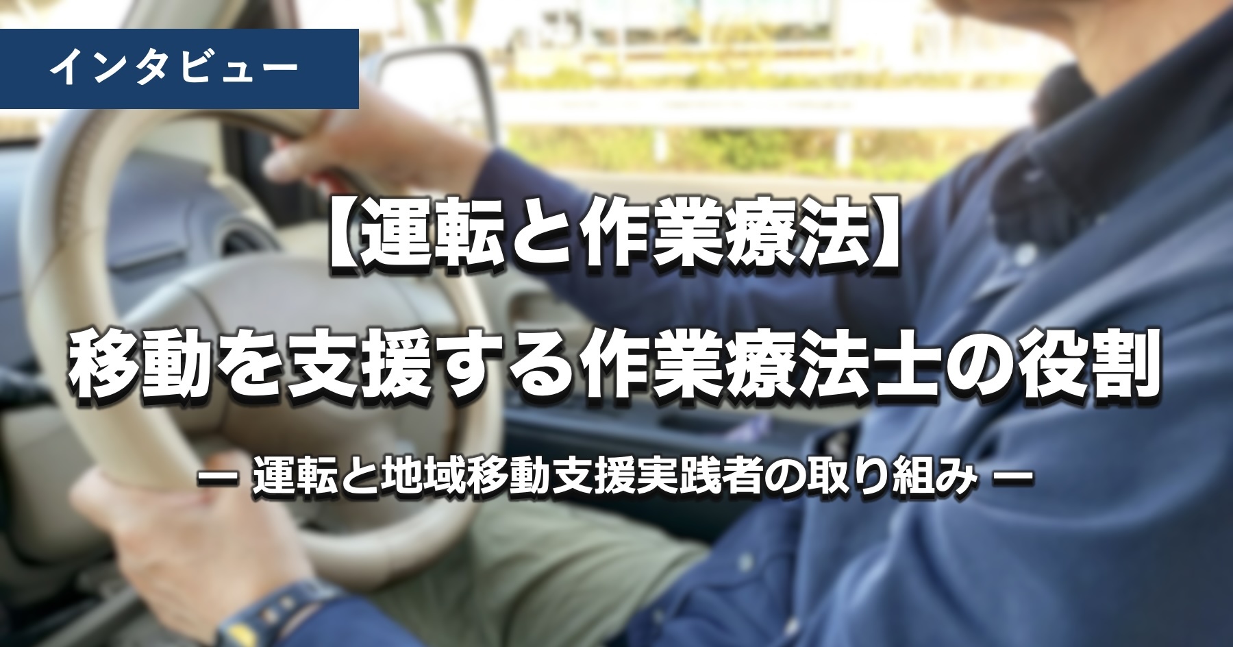 今回は、日本作業療法士協会が取り組む「運転と地域移動支援実践者」に注目し、実践者として活動する3名の作業療法士に、支援現場での取り組みの実際や、制度としての意義、今後の展望についてお話を伺いました。