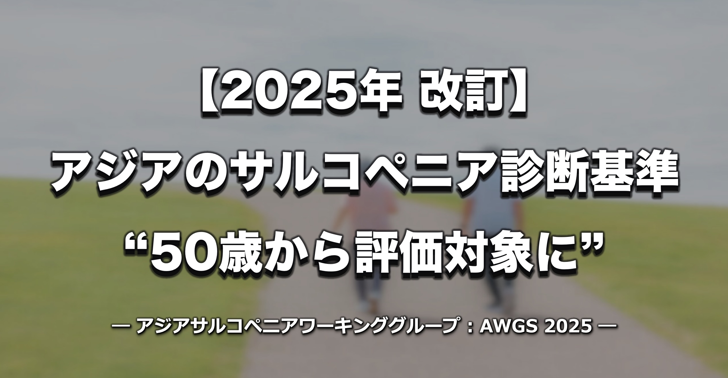 2025年11月、アジアサルコペニアワーキンググループ(AWGS)はサルコペニアの診断基準を見直し、現場の実態や国際的な研究に対応した形で改訂を行いました。