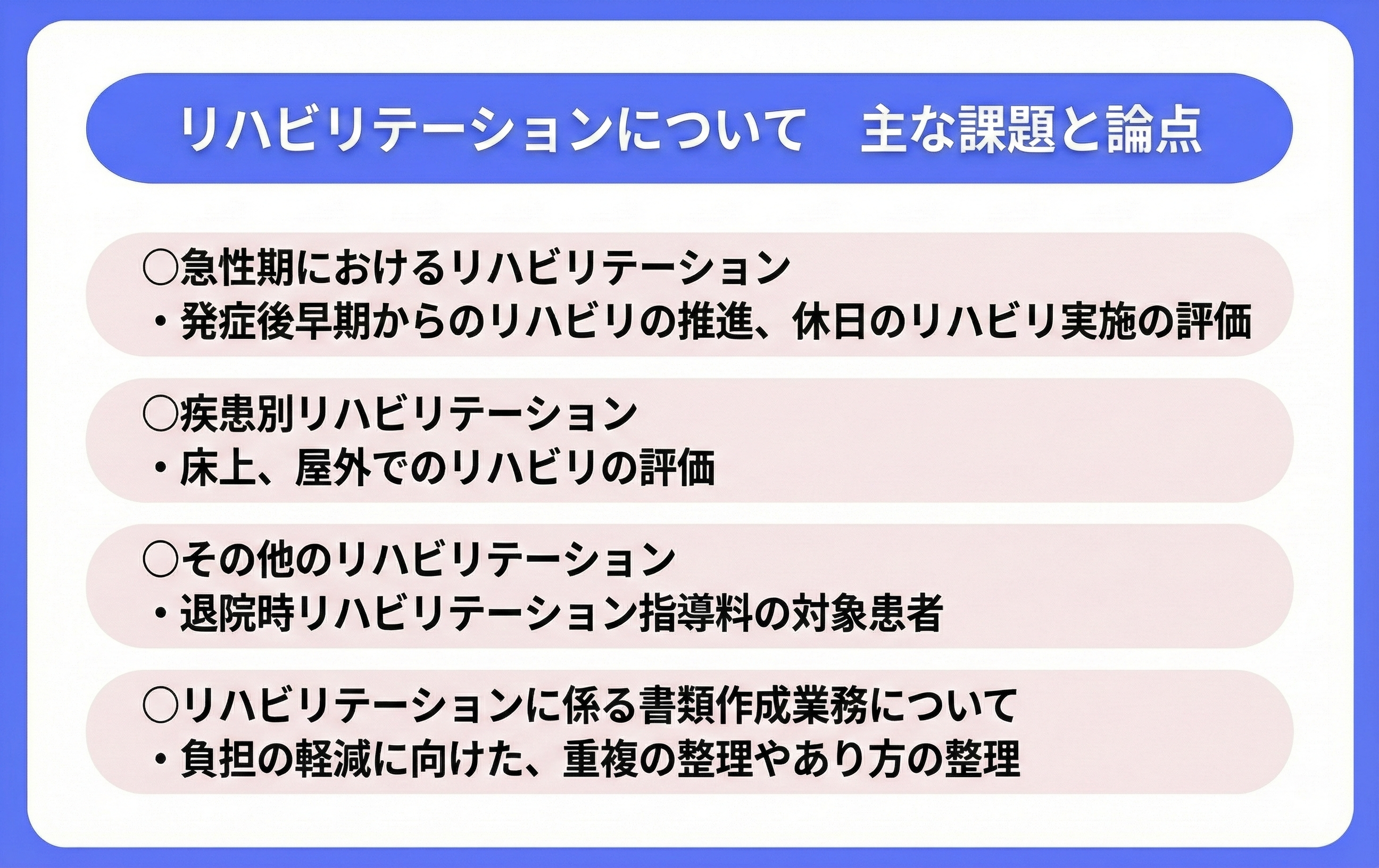 本記事では、そのうち「リハビリテーションについて」の議論を中心に解説します。