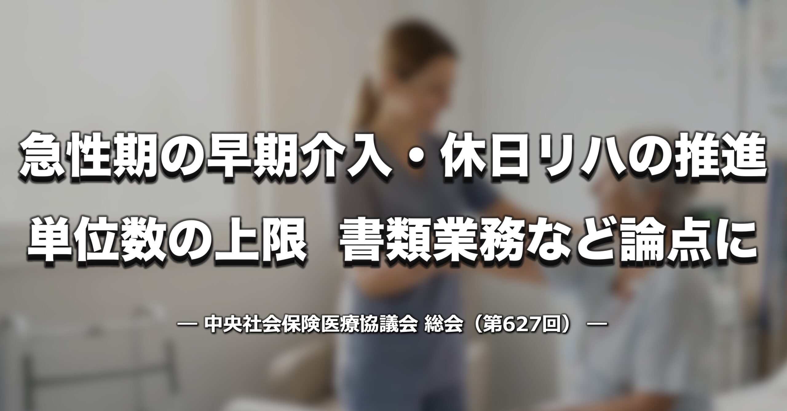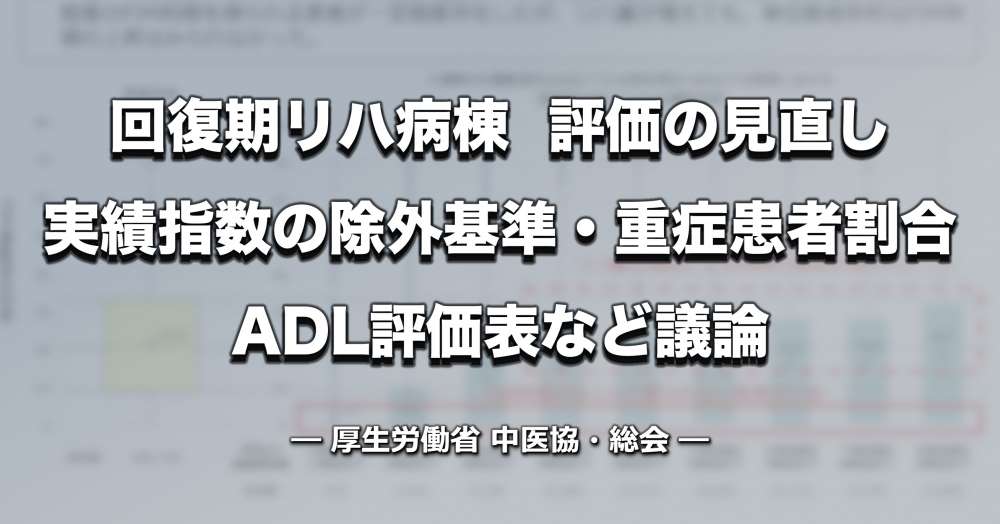 今回の中医協総会では、急性期から回復期、在宅移行を含む一連のリハビリテーション提供体制について、多角的な論点が整理されました。