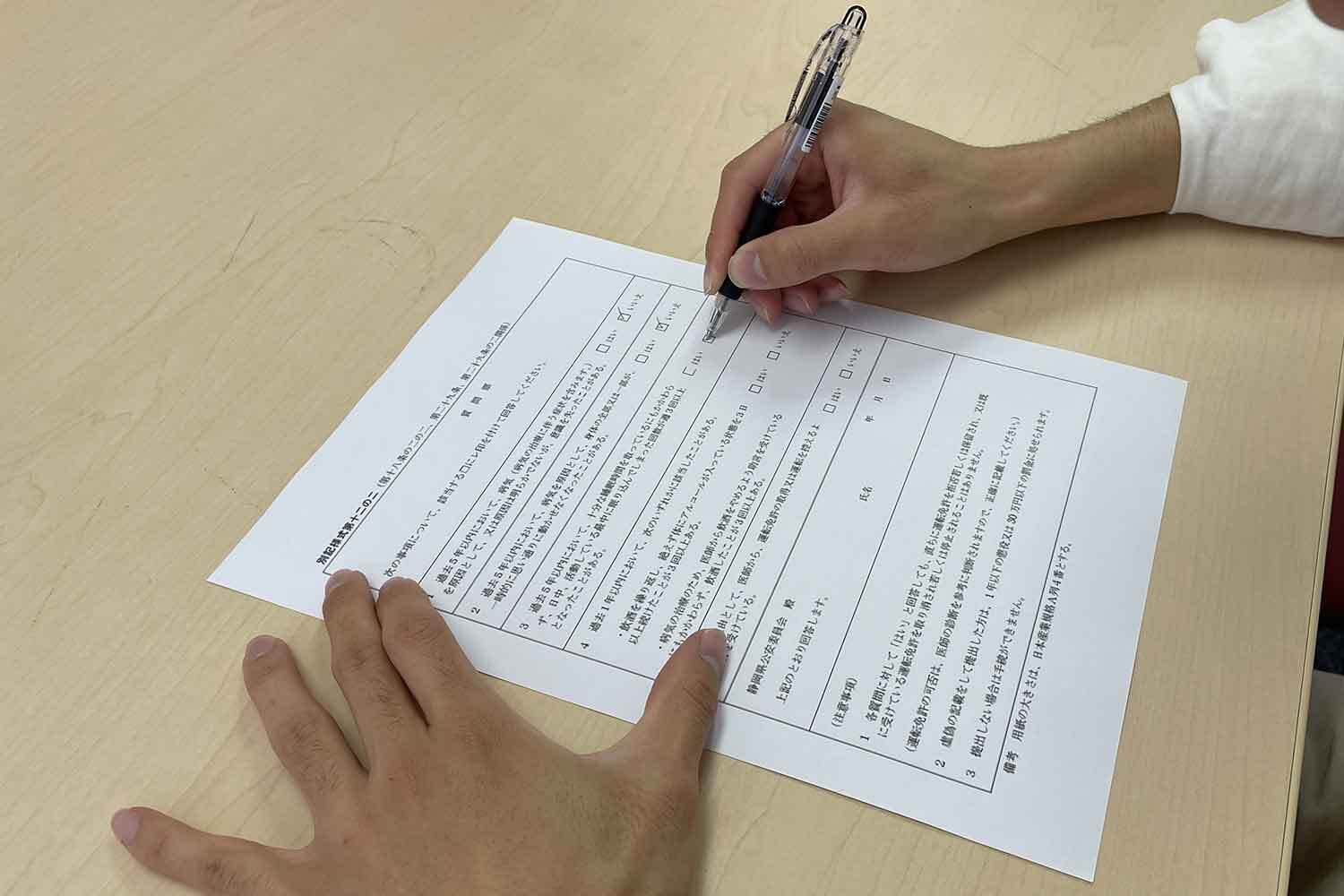 また2014年の法改正により、免許取得・更新には一定の病気等の病状に関する「質問票」の提出が義務付けられました。