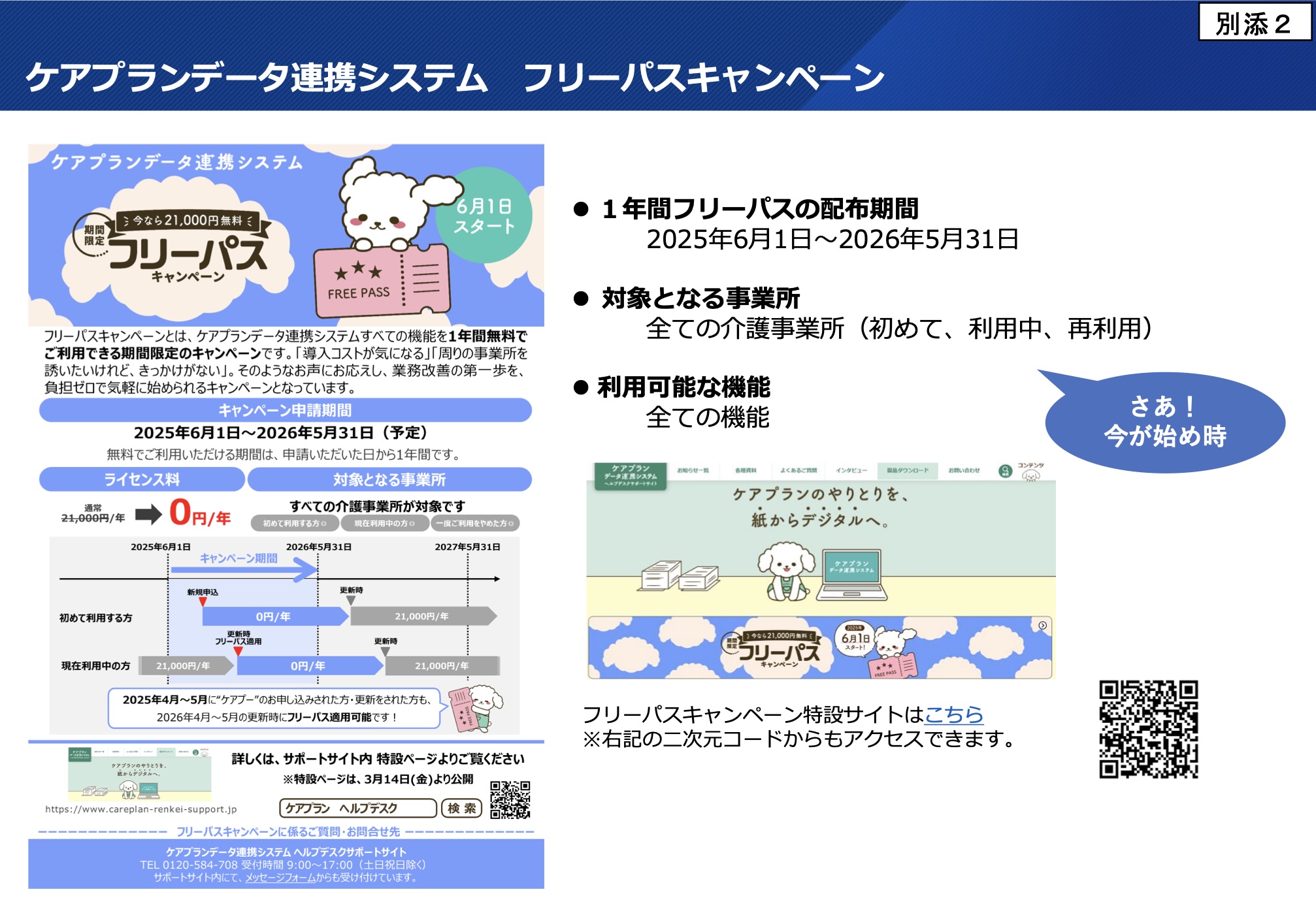 厚生労働省は13日、「ケアプランデータ連携システム」の導入支援として、システム利用を1年間無料、助成の対象とすることを事務連絡しました。