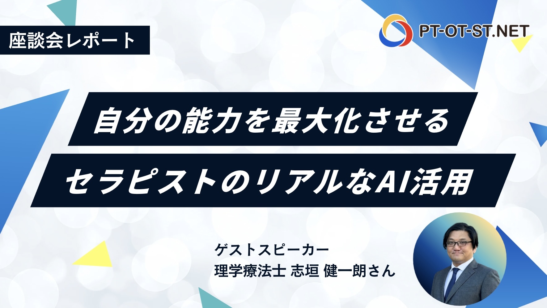 先日、理学療法士の志垣健一朗さんをゲストにお迎えし、「年内に触れておきたいセラピストのリアルなAI活用」をテーマにオンライン座談会を開催しました。