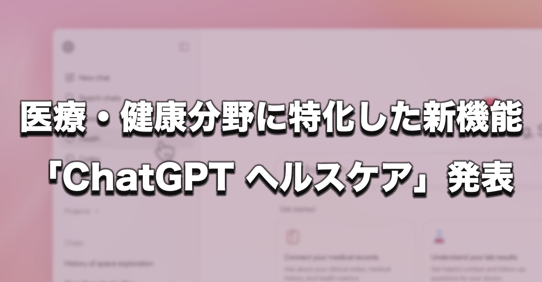 OpenAIは2026年1月、医療記録やウェルネスアプリなどと連携できる健康分野に特化した「ChatGPT ヘルスケア」を発表しました。
