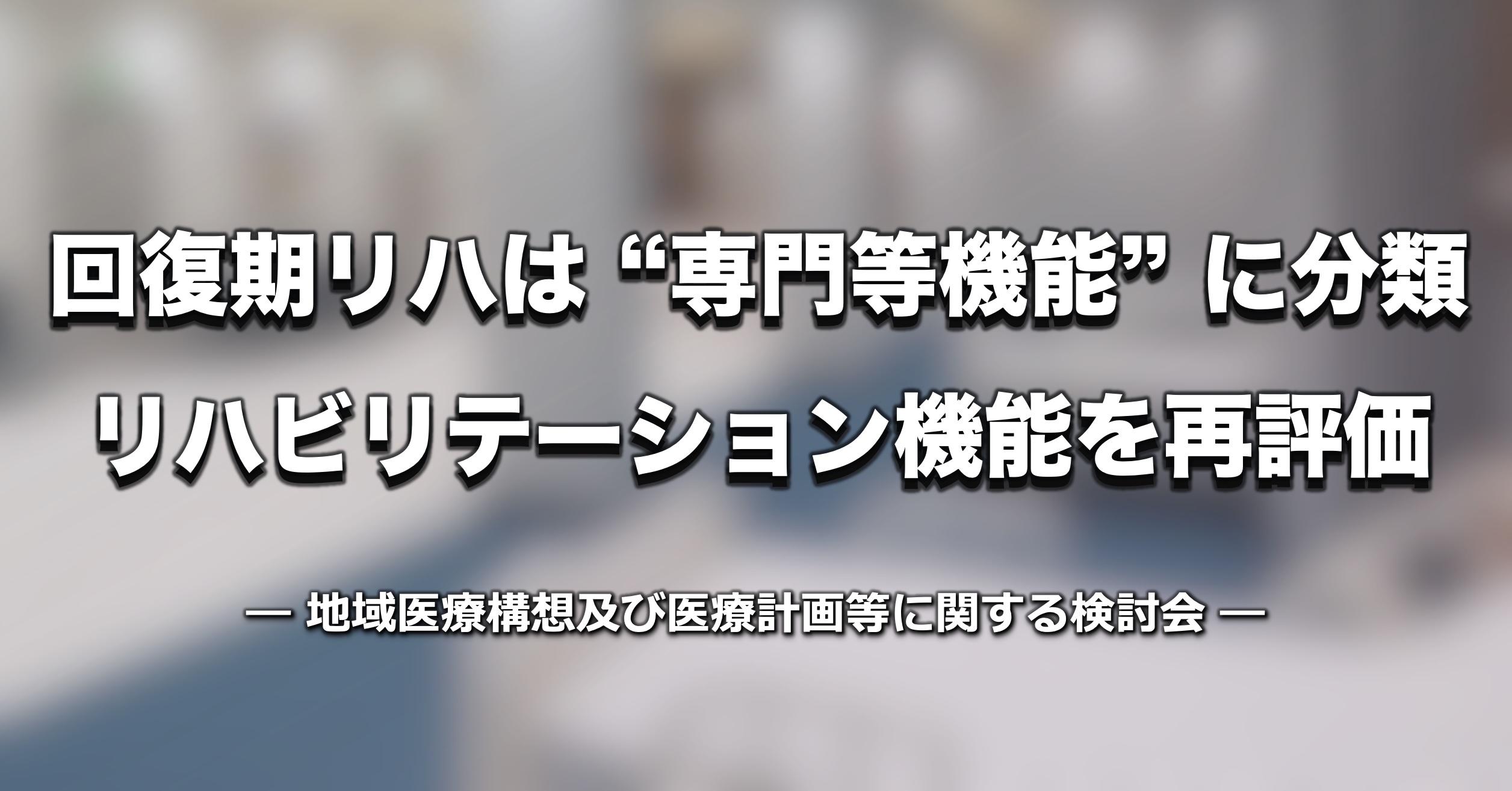 検討会に出席した委員会からは、新たな地域医療構想の取りまとめにおいて、「入院での早期のリハビリテーションや集中的なリハビリテーションが効果的な場合は入院でのリハビリテーションを提供しつつ、それ以外の場合には、介護老人保健施設等の他施設とも連携しながら、適切な場でリハビリテーションを提供することが求められる」と意見が示されました。