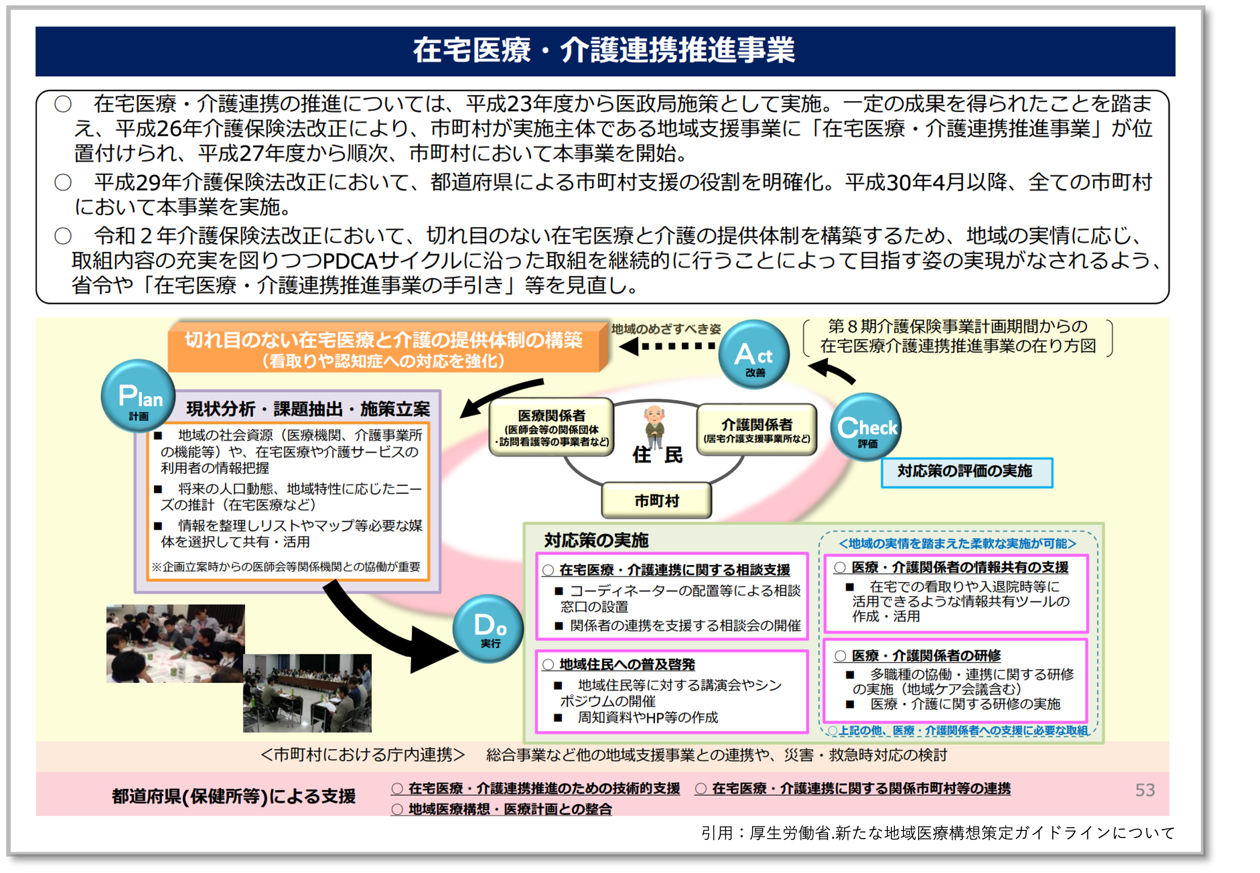 今後、「新たな地域医療構想」では、医療計画と介護保険計画を連動させ、在宅医療の提供体制の質と量の確保を図ることが今後の重要課題として示されています。