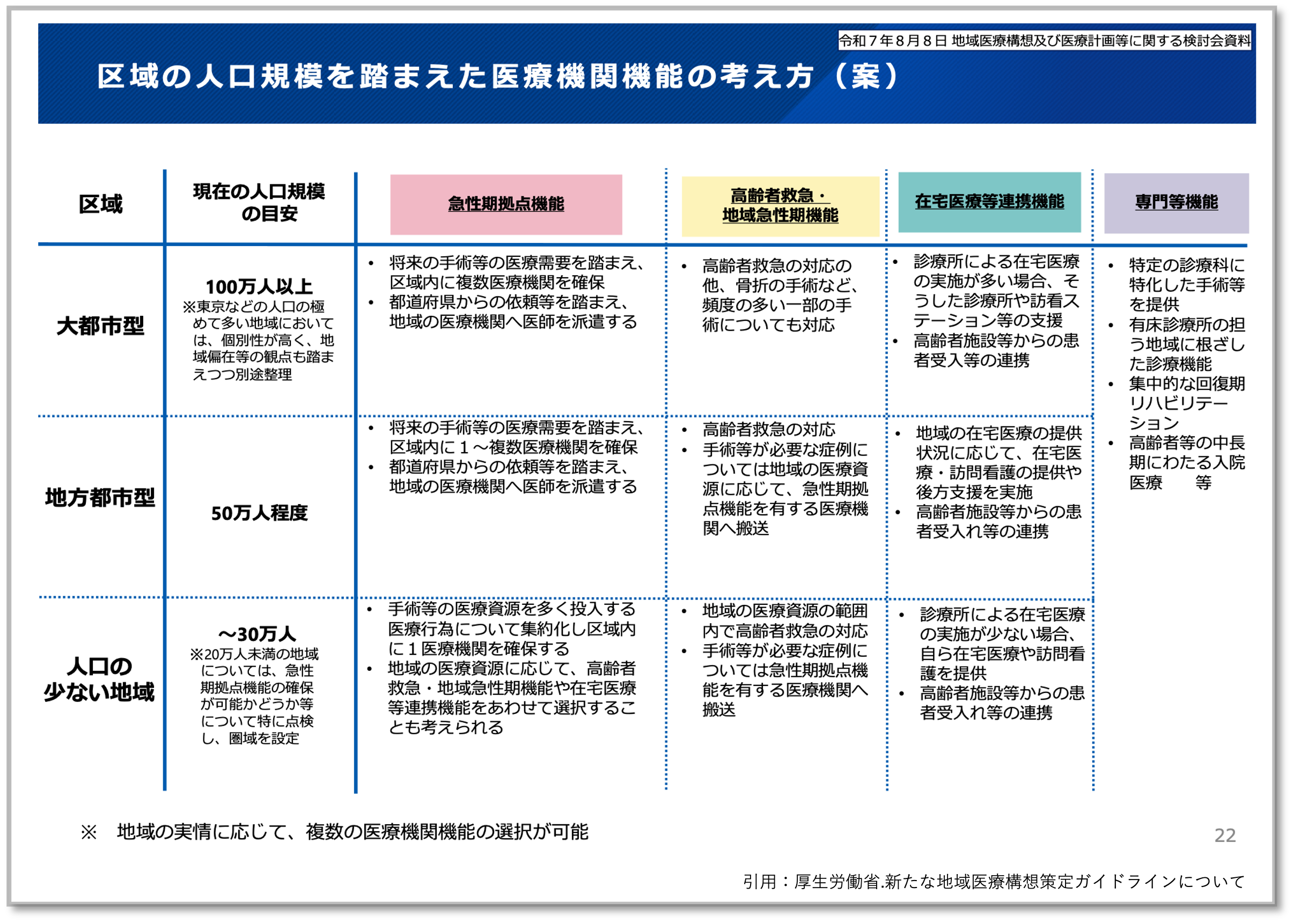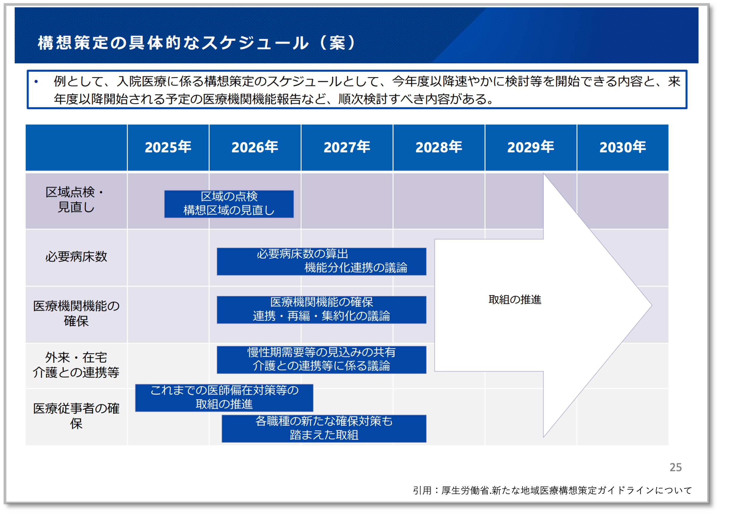 2026年には必要病床数の推計などの議論を進め、2027年以降は医療機能分化や連携の協議を本格化させる見通しです。