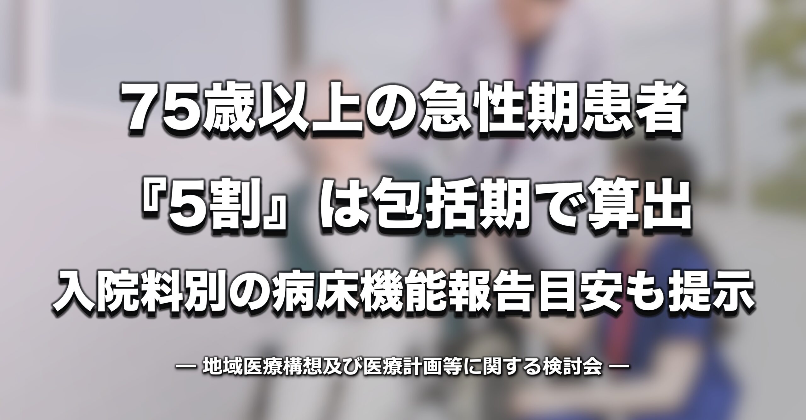 厚生労働省は、第9回「地域医療構想及び医療計画等に関する検討会」を開催し、75歳以上の急性期患者のうち5割を包括期の需要として算出する方針など、新たな地域医療構想策定ガイドラインについて議論を行いました。