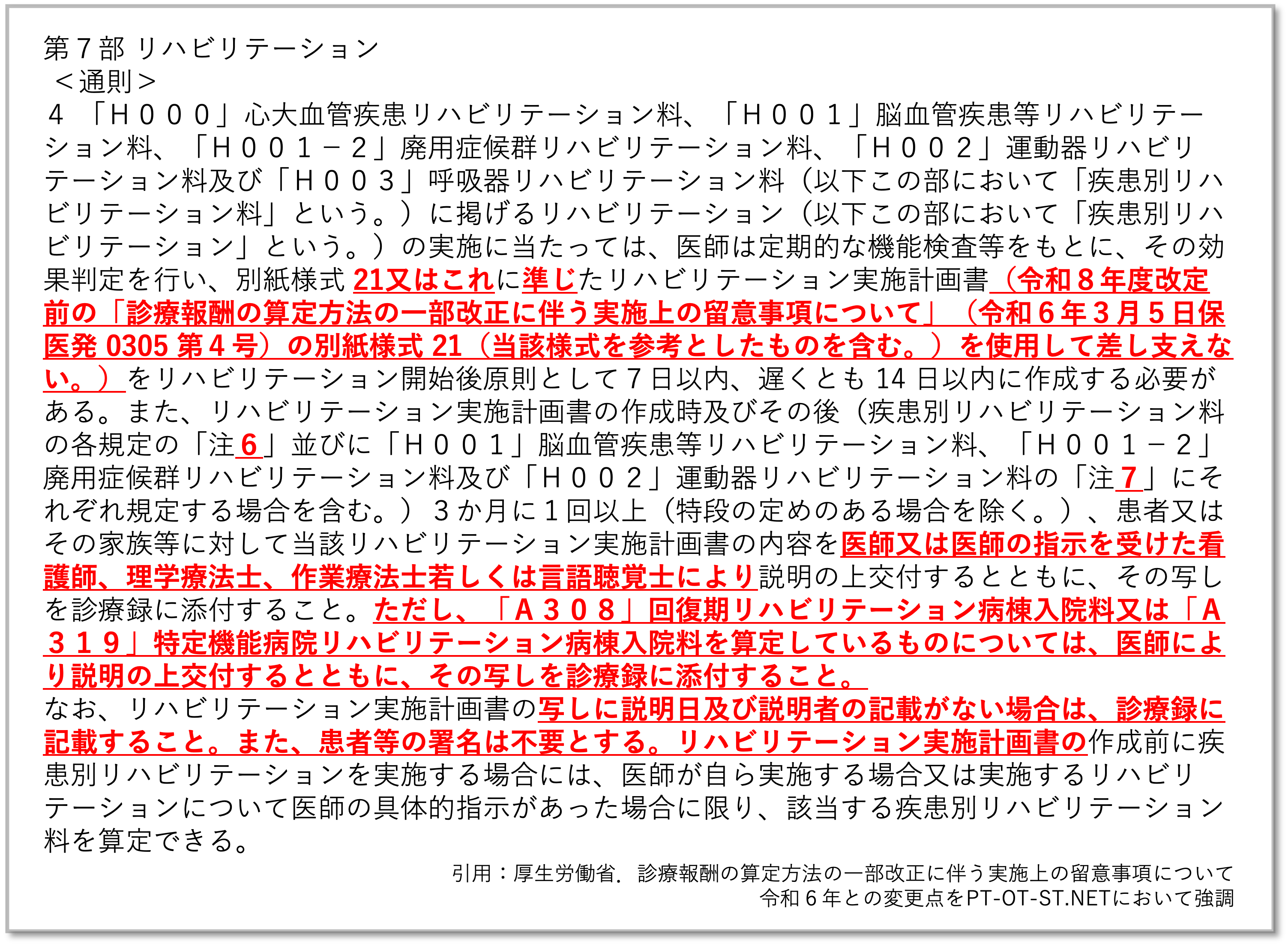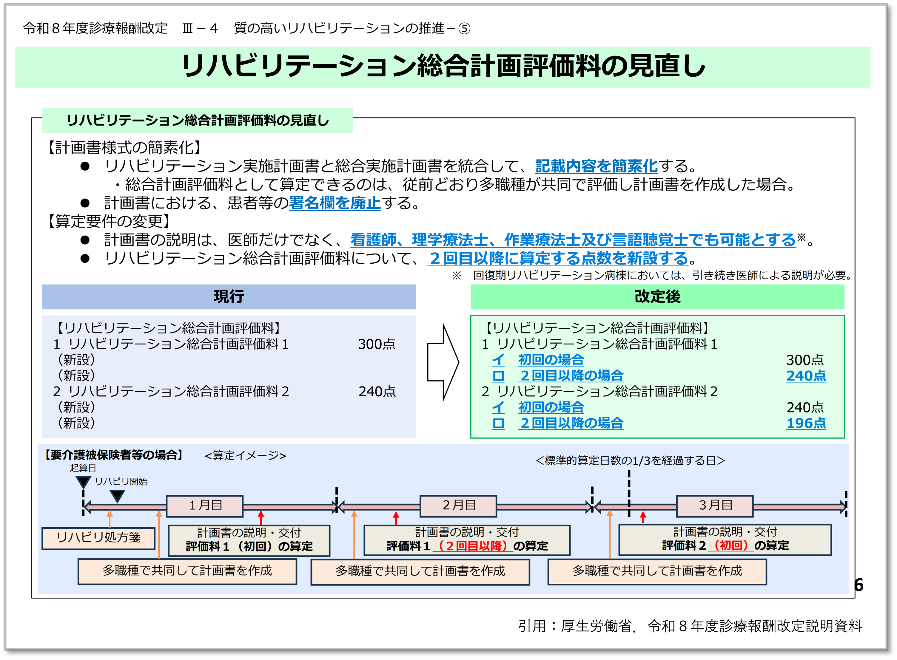 令和8年度診療報酬改定に伴い、リハビリテーション実施計画書およびリハビリテーション総合実施計画書の説明方法や患者署名の取り扱いが見直されました。