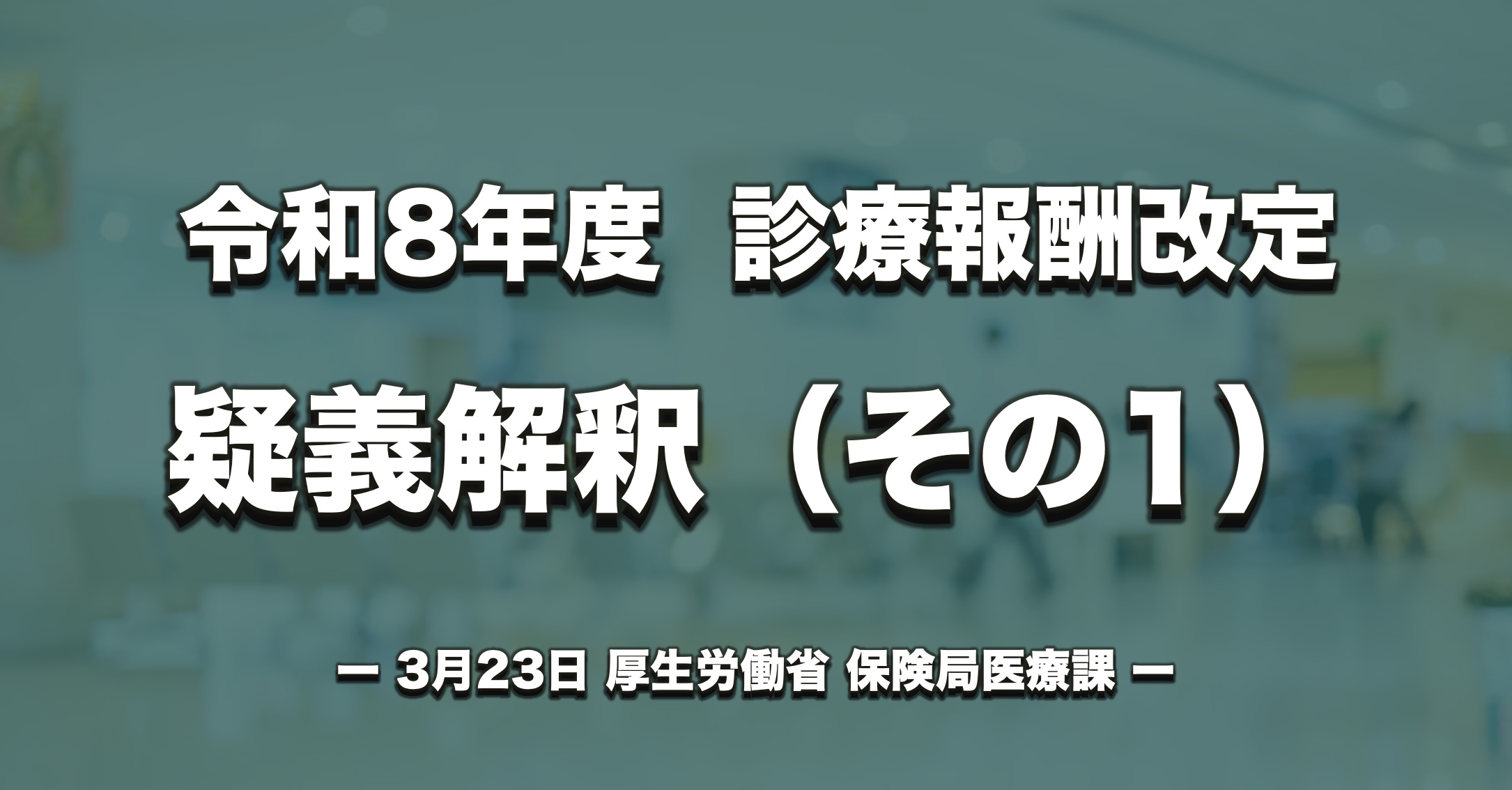 3月23日、厚生労働省は令和8年度診療報酬改定に関する「疑義解釈(その1)」を事務連絡としてホームページに公開しました。
