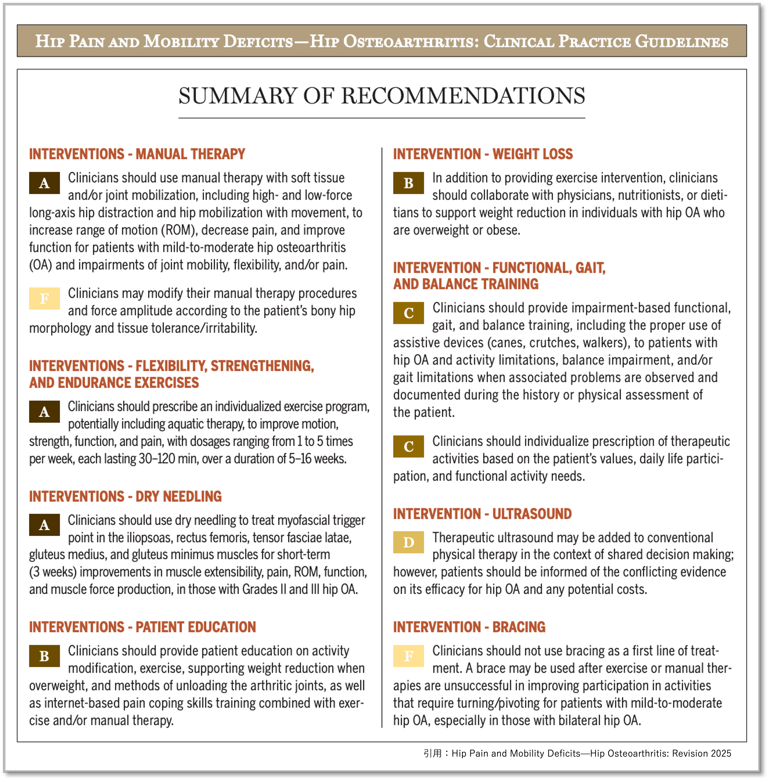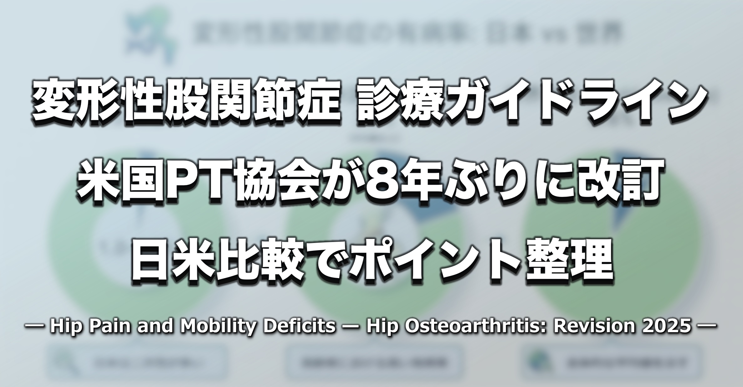アメリカ理学療法士協会(APTA)は2025年10月、変形性股関節症の診療ガイドライン「The 2025 Hip Pain and Mobility Deficits - Hip Osteoarthritis Clinical Practice Guideline 」を8年ぶりに改訂しました。