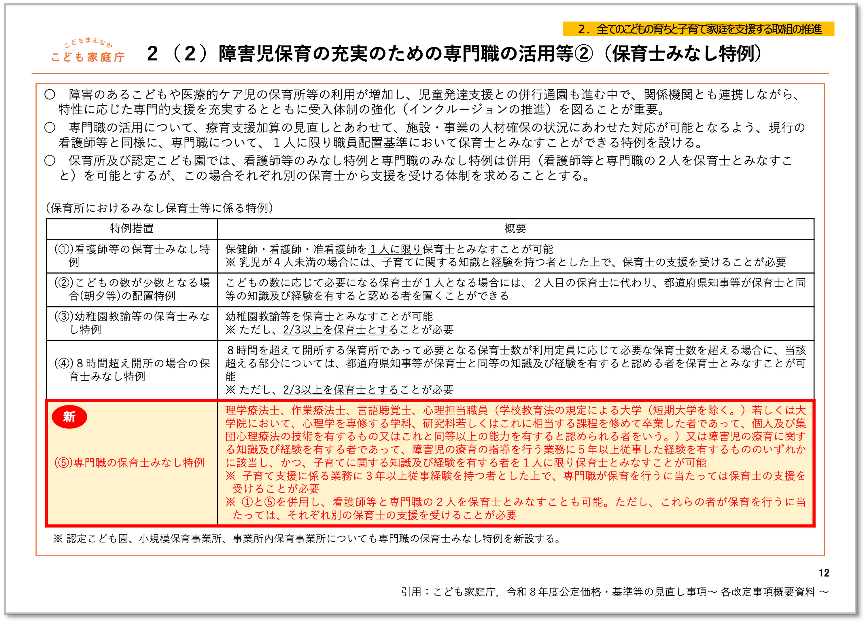 ■ 令和8年度公定価格・基準等の見直し事項~ 各改定事項概要資料 ~(こども家庭庁HP)