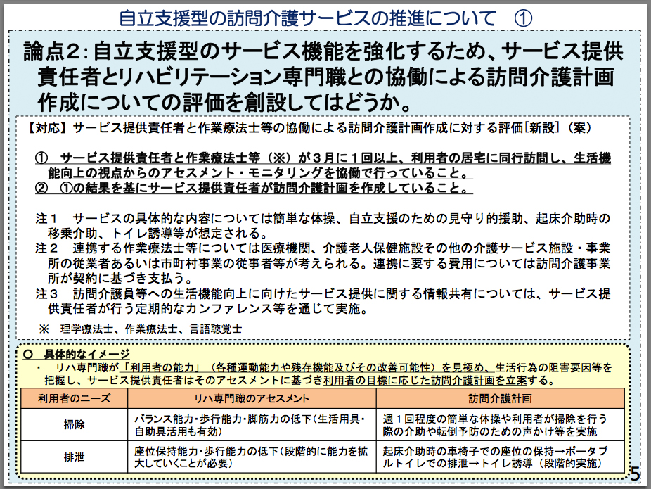 訪問介護については、リハビリテーション専門職と連携し、自立支援型サービスとしての